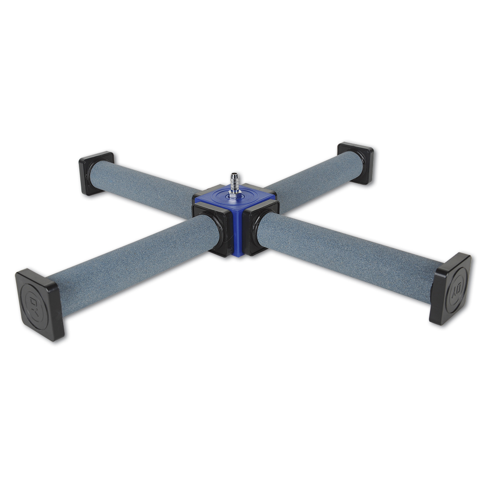 U kunt dit blok van 4 stuks aansluiten op een slang van 9 mm. Het blok wordt eenvoudig op de bodem van de vijver gelegd. De luchtstenen worden afzonderlijk in het blauwe blok geschroefd. Onze normale uitstromers 22 x 4 kunnen hiervoor echter niet worden gebruikt, omdat deze een andere aansluiting hebben.