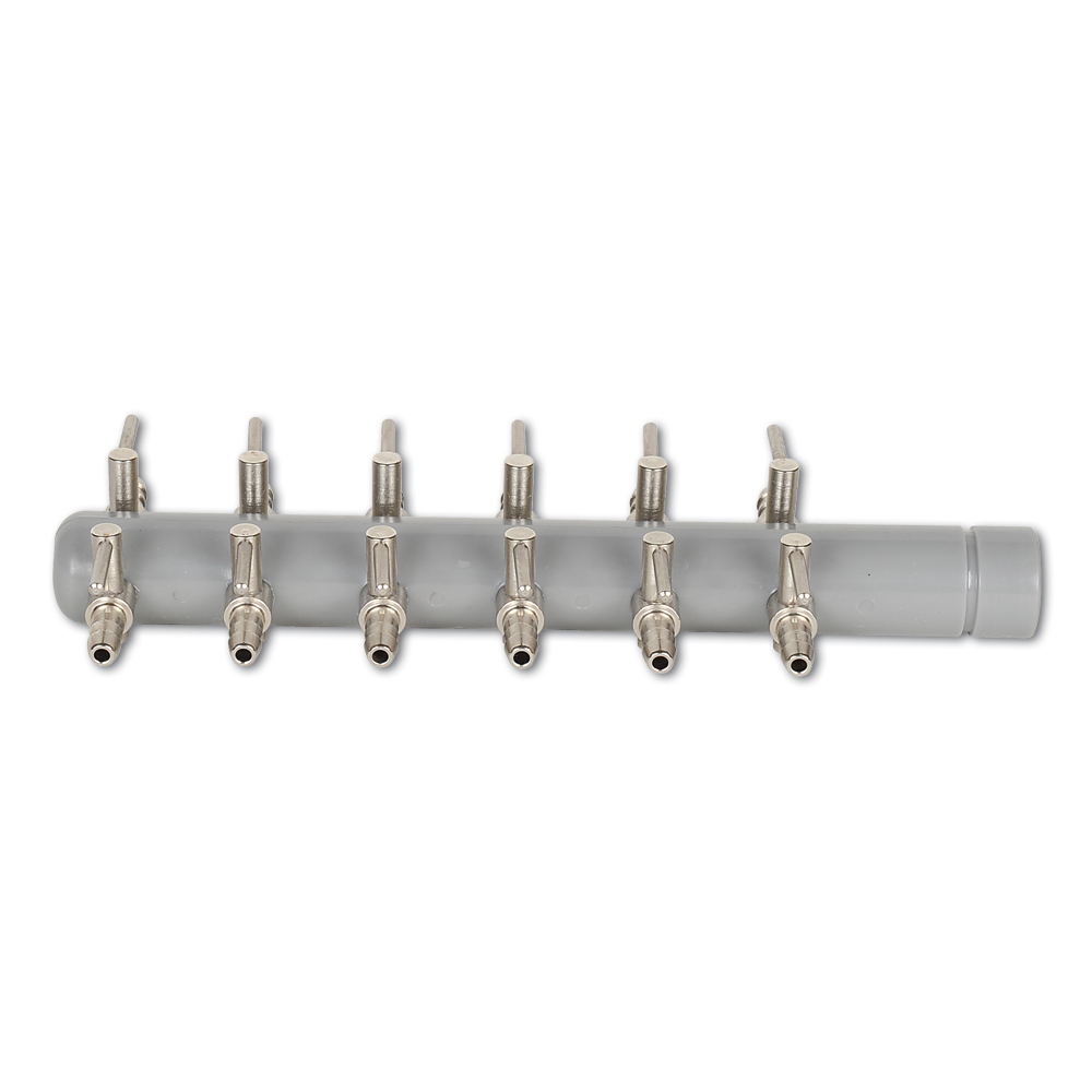 U kunt deze handgemaakte verdeler op alle luchtpompen aansluiten en zo zoveel uitgangen creëren als u wilt. Elke kraan is vervangbaar.