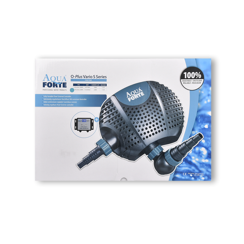 De AquaForte O-Plus Vario S vijverpomp is een regelbare vijverpomp met een externe regeleenheid.