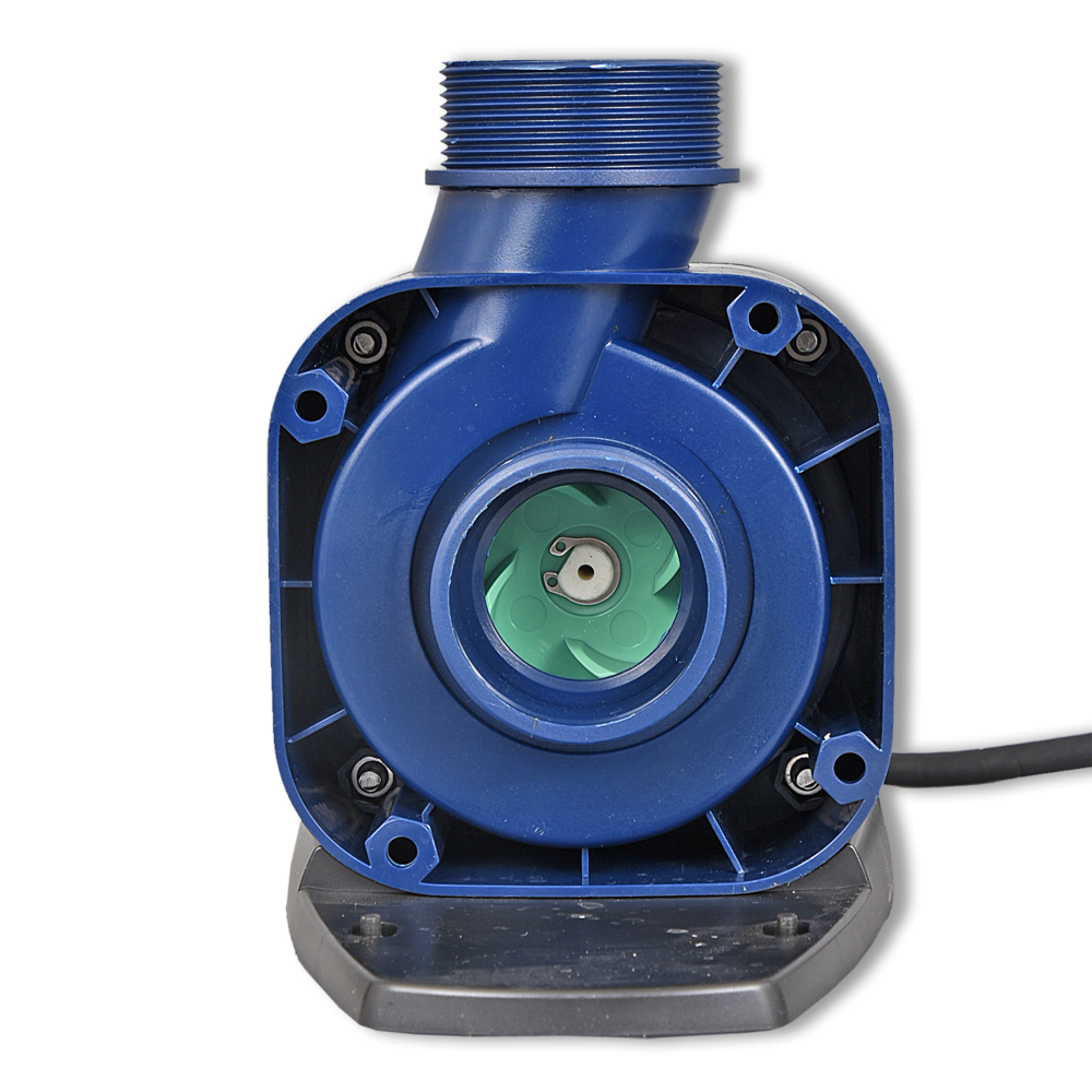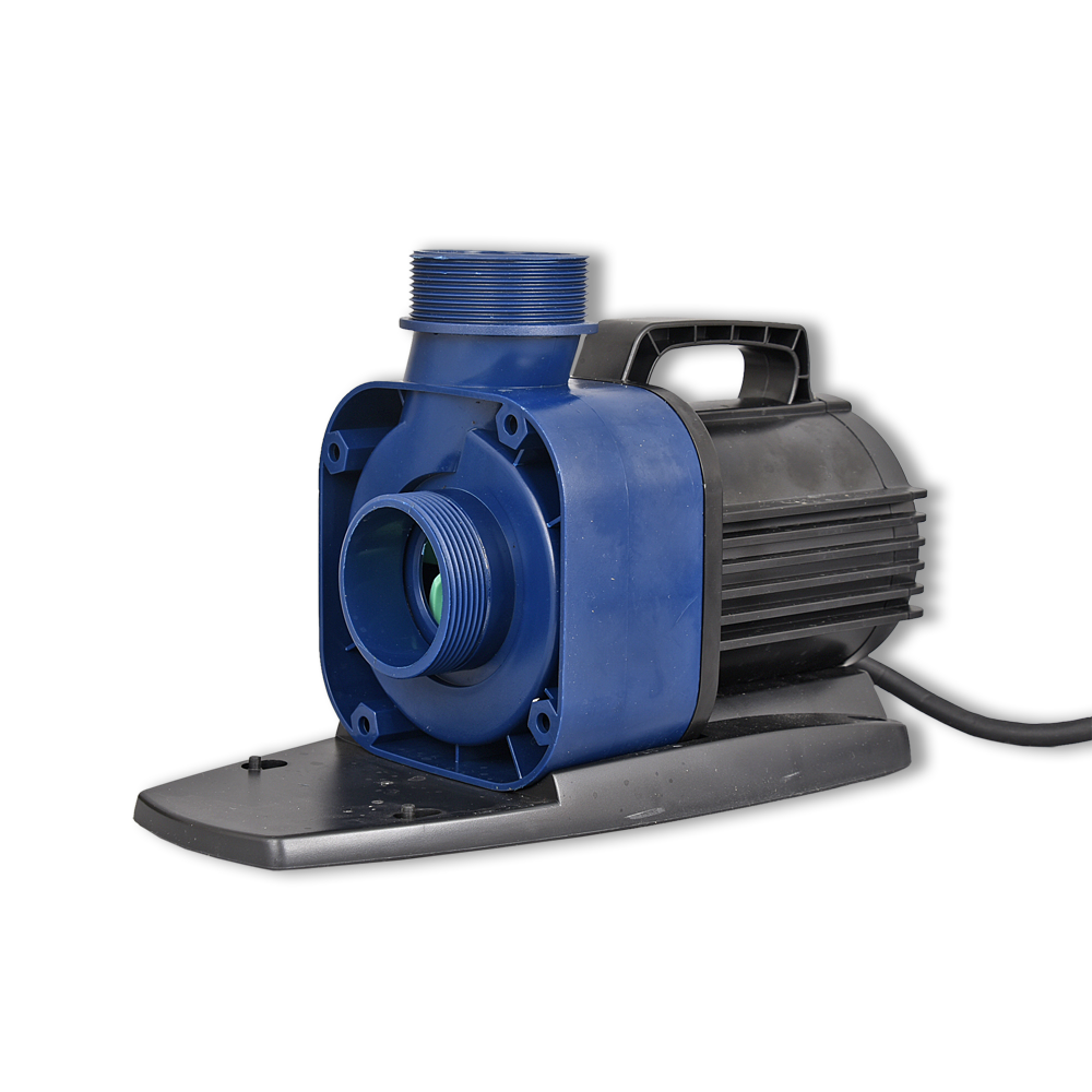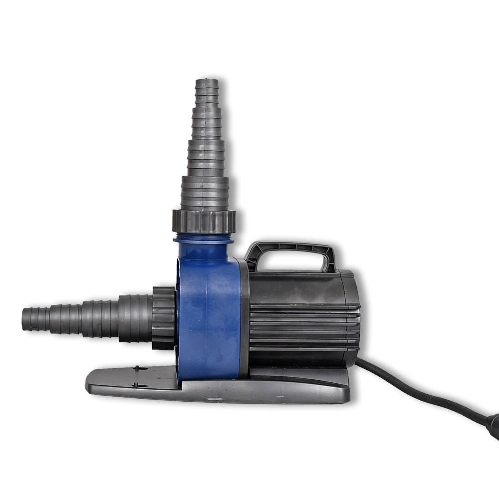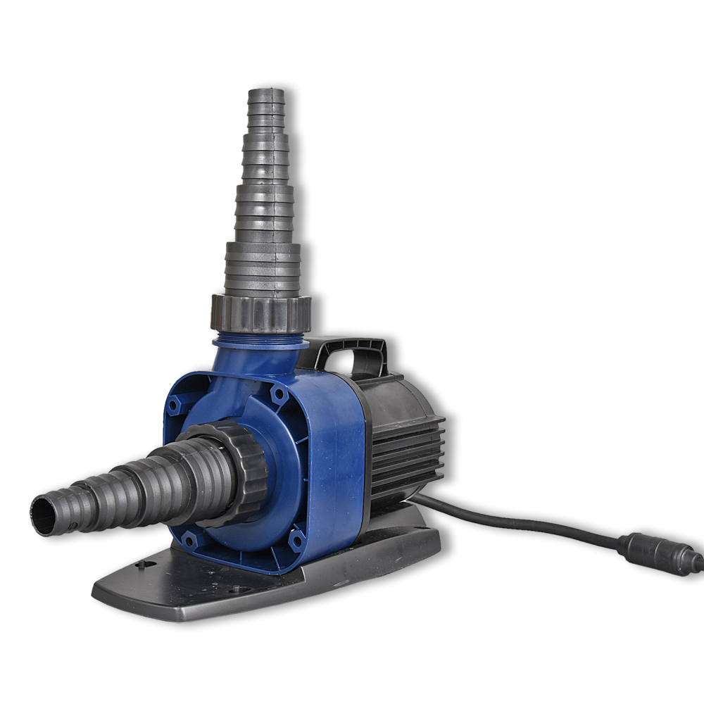 Regelbare en energiezuinige Eco-pomp voor gebruik in vijvers of op het droge.