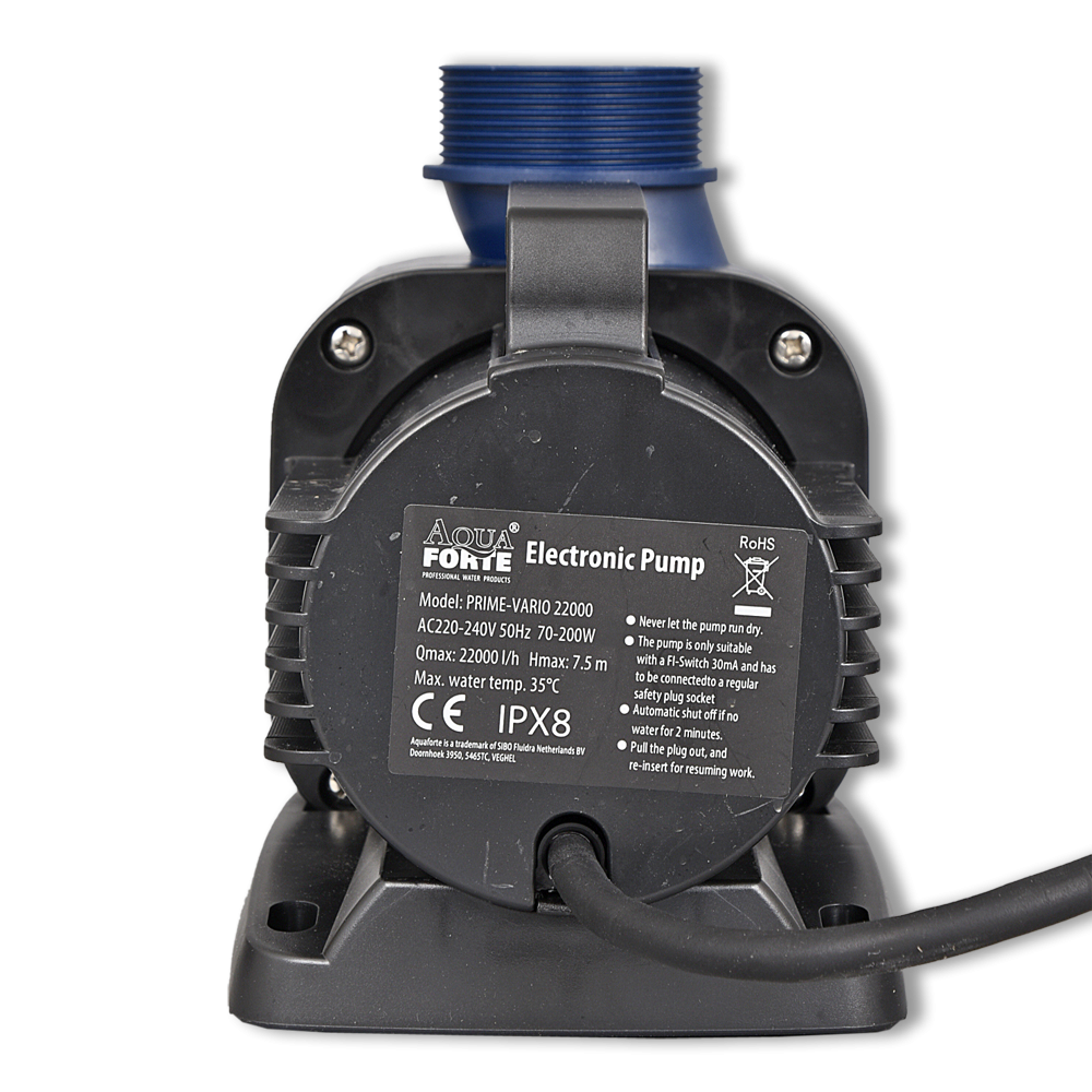 De AquaForte Prime Vario vijverpomp is een regelbare vijverpomp met een externe regeleenheid.