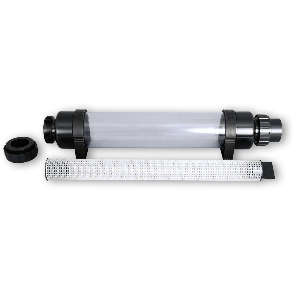 Het buisvoorfilter vangt grove vuildeeltjes en verontreinigingen op, zodat deze niet in de pomp of het filter terechtkomen. Door het praktische kijkglas is de mate van vervuiling altijd gemakkelijk te zien.