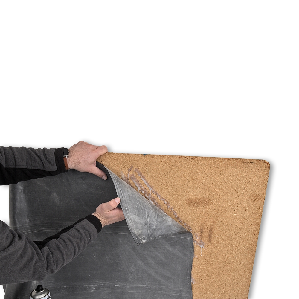 - Spuit de folie en het te verlijmen oppervlak in met lijm en verlijm beide oppervlakken na 2-4 minuten droogtijd met elkaar