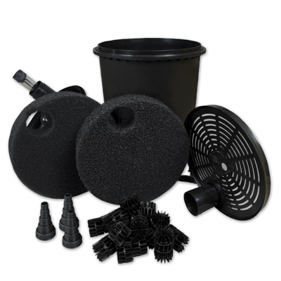filter gebruiken voor vijvers met een visbestand tot max. 7500 liter, het maximale pompvermogen bedraagt 6500 liter/uur.