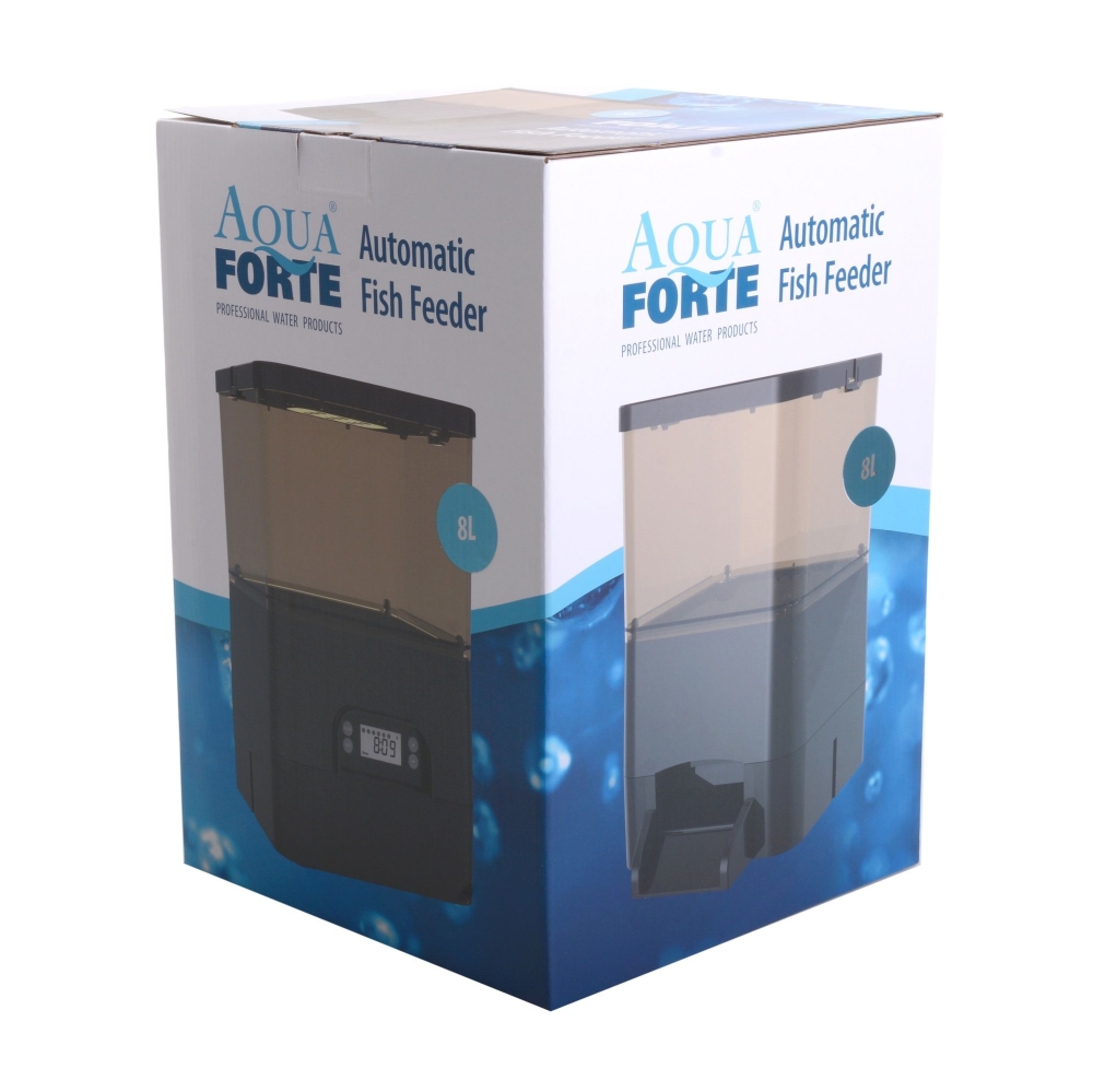 De nieuwe Aqua Forte Automatic Fish Feeder is een universeel oplaadbare voerautomaat die direct naast de vijver kan worden geplaatst. Hij kan worden gebruikt met een stekker, batterij, zonnepaneel of oplaadbare batterij. Het zonnepaneel moet samen met de oplaadbare batterij worden gebruikt.