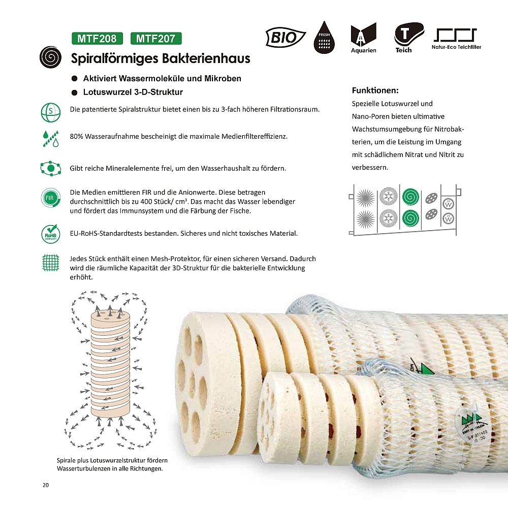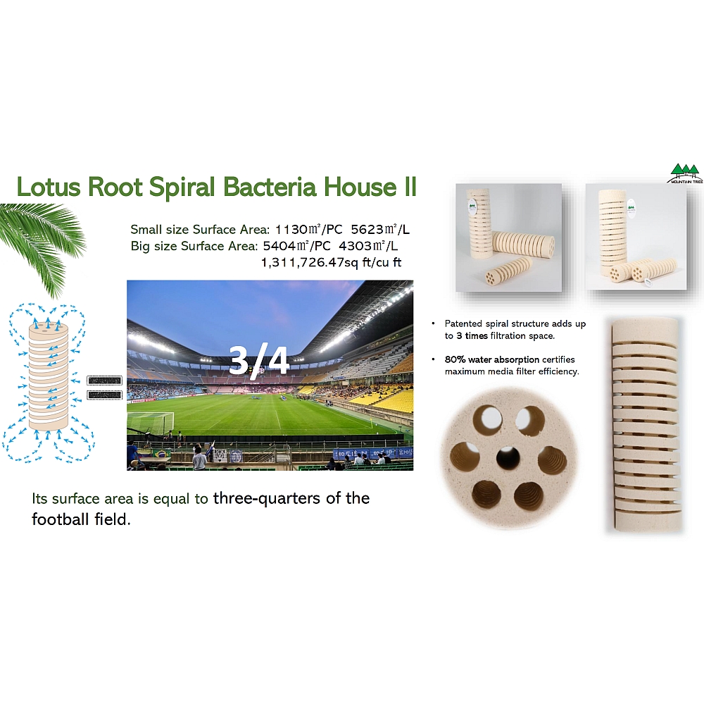 Dit filtermedium is door zijn spiraalvormige vorm geïnspireerd op een lotuswortel. Het bestaat uit keramiek met minerale ingrediënten, die bovendien aan het water worden afgegeven.