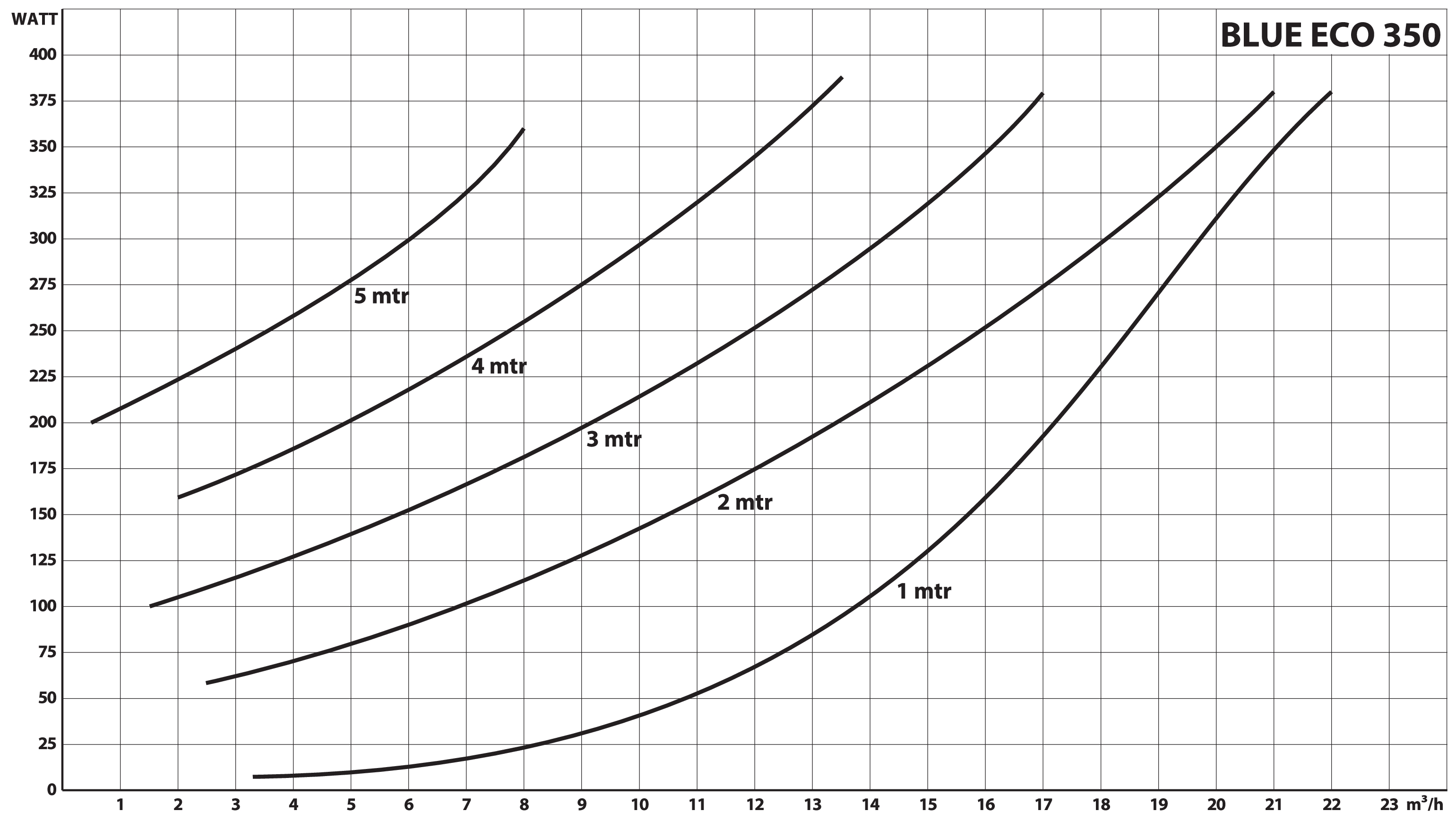| Blue Eco 350 | 10-350 W | 25.000 l/u | 8 m | 2 1/2" AG | 50 mm binnen / 63 mm buiten | 220 x 140 x 160 |