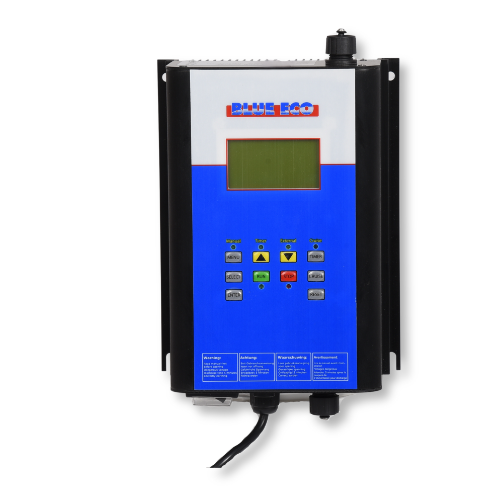 De externe regeleenheid stuurt de pomp aan. Deze zorgt met de True Sine Wave-technologie voor de hoogste mate van efficiëntie en betrouwbaarheid. Hij geeft het vermogen, het stroomverbruik, het toerental en de bedrijfsuren weer, evenals eventuele storingen.