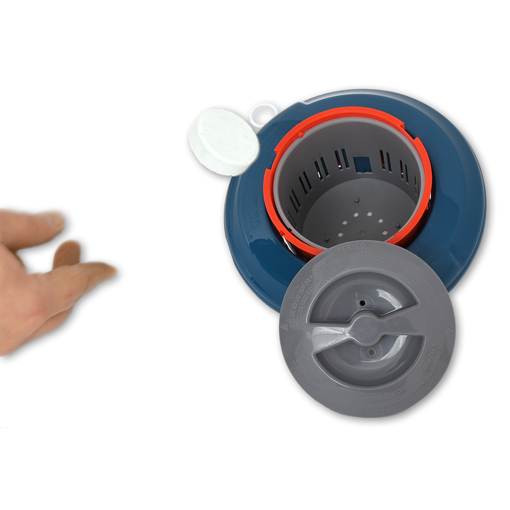 Doseerzweem voor tabletten van 200 g met verbruiksindicator. Drijft zodra de tablet is opgelost.