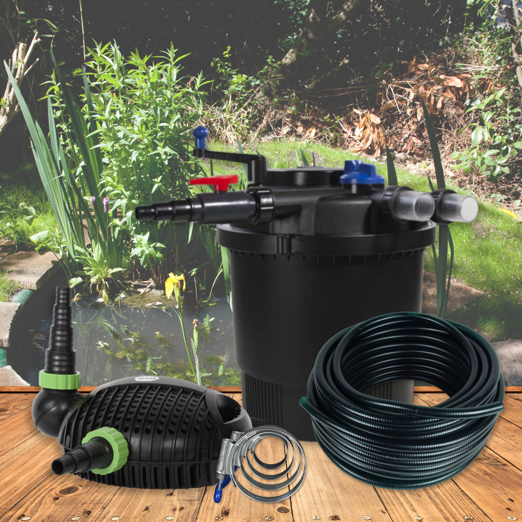 Complete set incl. drukfilter, pomp, slang en klemmen – eenvoudig aansluiten en starten