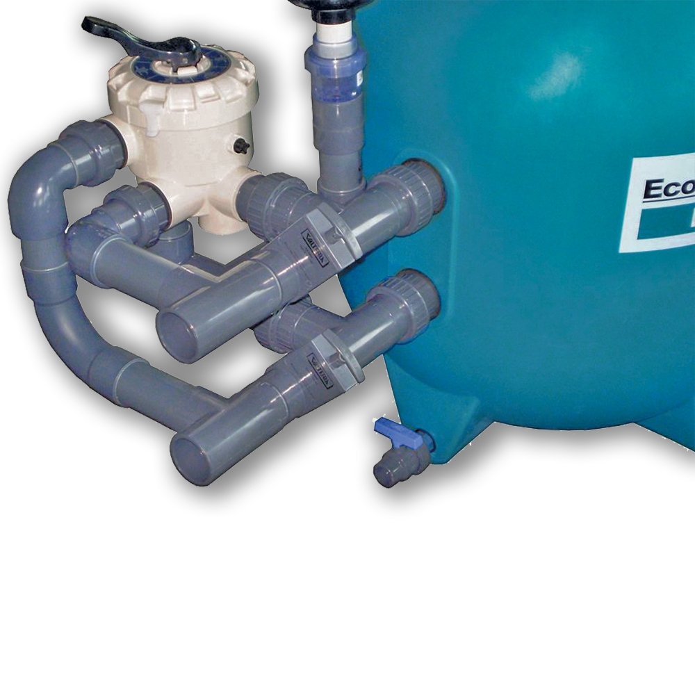 De fabrikant biedt voor alle EconoBead-filters een bypass aan. Deze is vanaf model 60 inbegrepen. Hiermee wordt het gebruik van energiebesparende pompen mogelijk. De 6-wegklep wordt tijdens het filteren omzeild, zodat het water rechtstreeks in en uit het filter stroomt. Tijdens het spoelen worden de schuifafsluiters gesloten, waarna het water via de 6-wegklep stroomt. Dankzij de schroefdraadkoppelingen is het bypass-systeem zeer eenvoudig op alle kralenfilters te monteren.