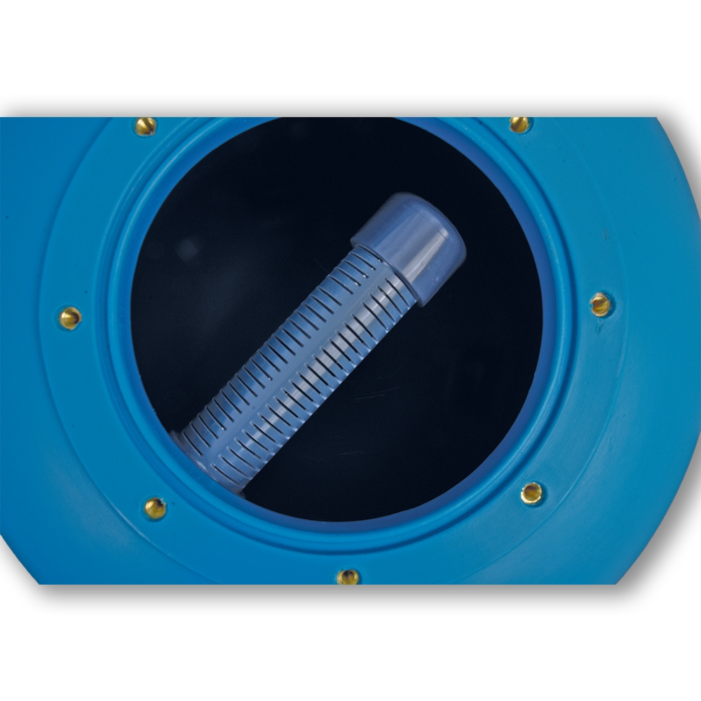 - Het filter wordt standaard geleverd met een blower (ventilator), die een enorme hoeveelheid lucht produceert, waardoor de kralen optimaal worden gereinigd.