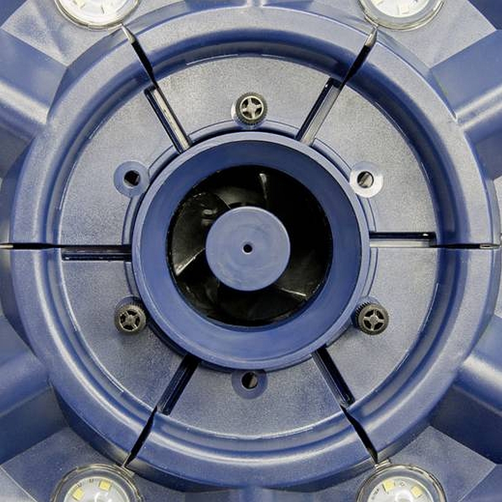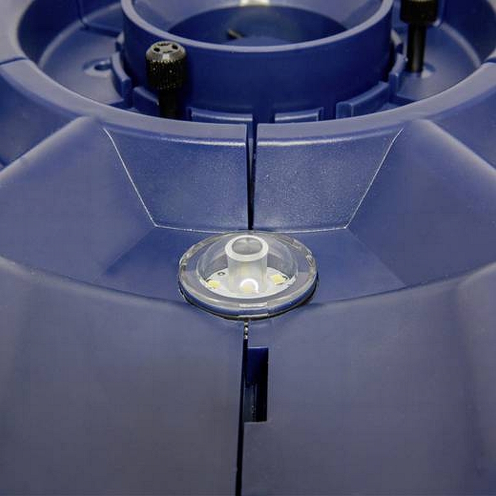 Veelzijdig inzetbare waterbeluchter. Compact, krachtig, visueel aantrekkelijk. Drijvende vijverbeluchter inclusief ingebouwde, inschakelbare ledverlichting. De pompmotor kan worden geregeld van niveau 0 tot 100 met behulp van de driehoekstoetsen. Na het loslaten van de toets geeft de regelaar het huidige stroomverbruik (watt) weer. Het laatst ingestelde vermogensniveau blijft ook na het loskoppelen van het stroomnet behouden. Eenvoudige bediening voor maximaal comfort en flexibiliteit. Axiale propellertechnologie en geoptimaliseerde motortechniek zorgen voor een hoog vermogen bij een zuinig energieverbruik. Compleet aansluitklare set voor de beluchting van tuinvijvers, visvijvers en siervijvers, bijvoorbeeld in golf- en parkcomplexen, en vele andere toepassingen.