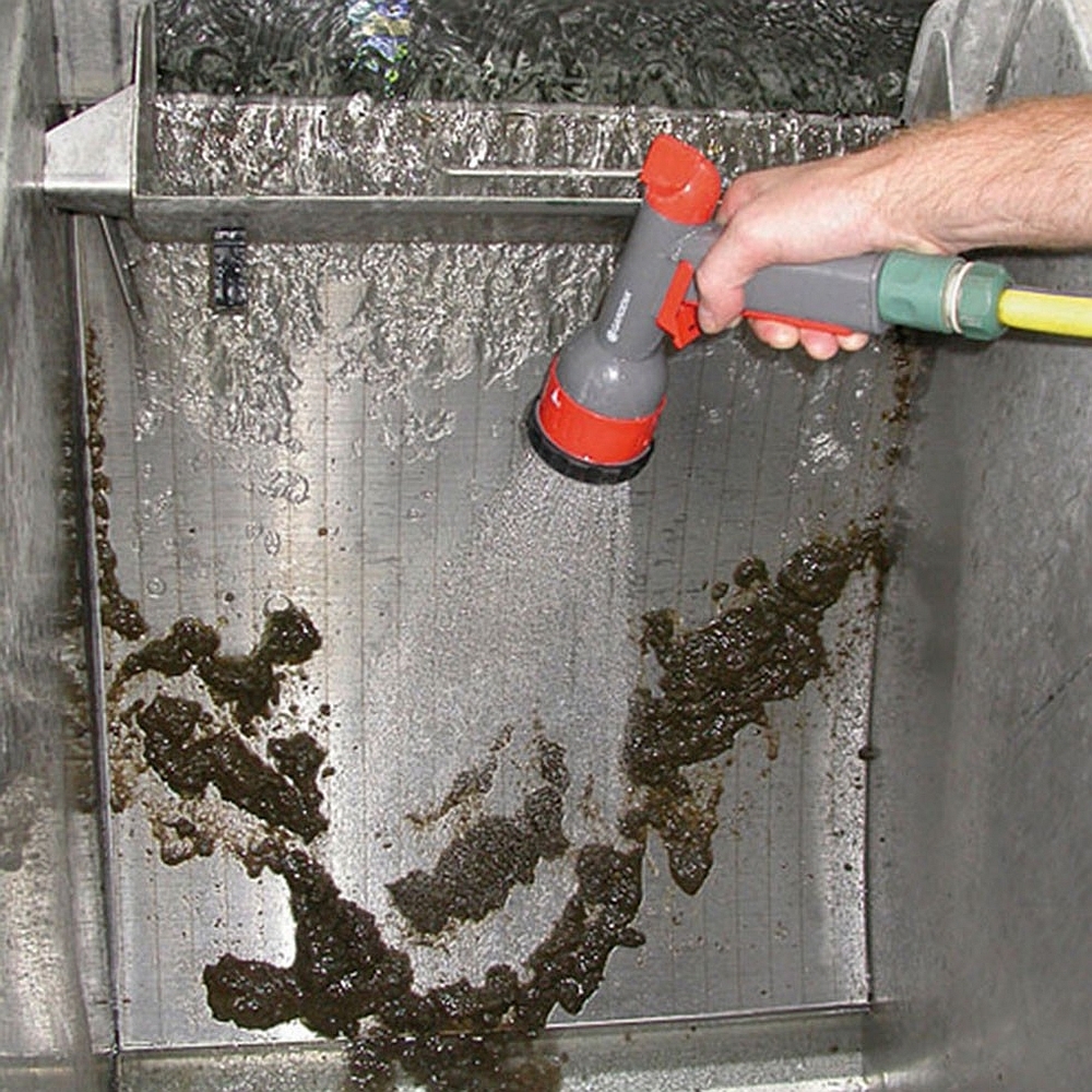 Zeer eenvoudig in gebruik: een dompelpomp wordt in de vijver geplaatst. De pomp wordt met een slang aan het zeeffilter aangesloten. Het water valt door de zeef en het vuil dat groter is dan 0,30 mm blijft op de zeef achter.
