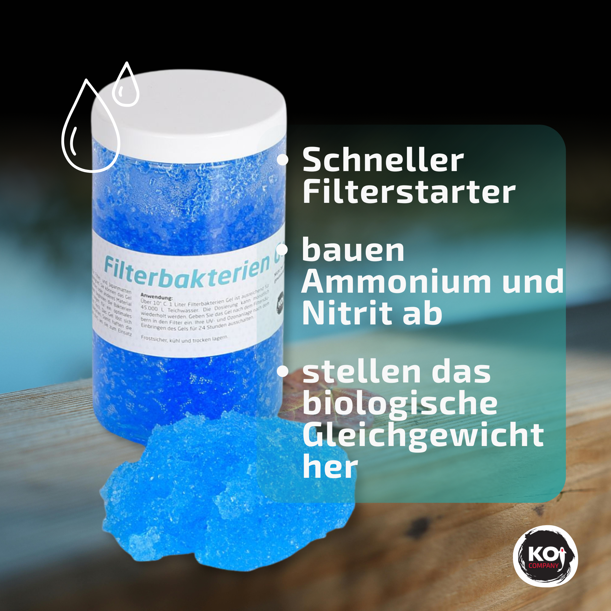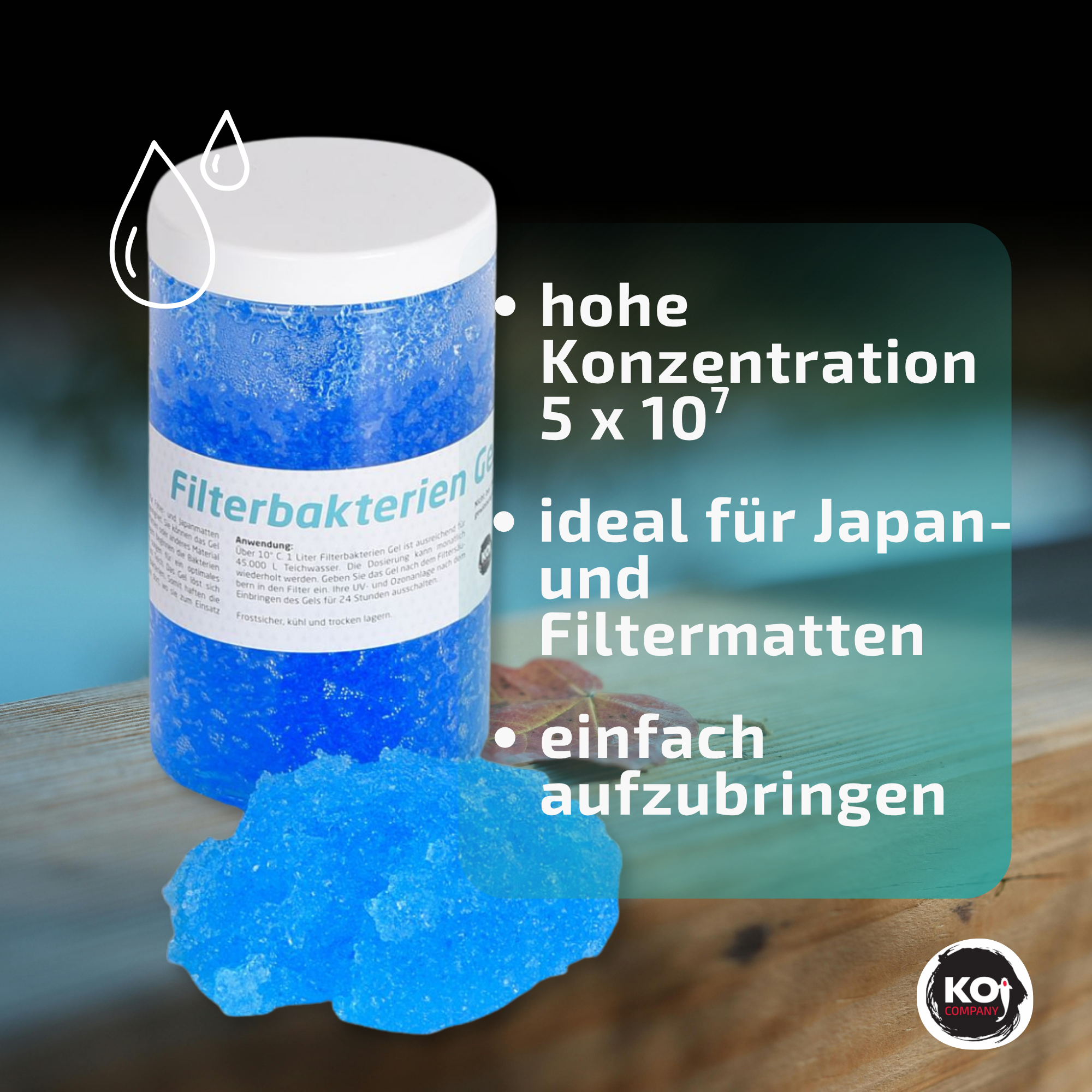 Vroeger hadden we dikvloeibare filterbacteriën in ons assortiment. Deze konden gemakkelijk over een filtermateriaal worden verspreid. Voor alle eigenaren van meer-kamerfilters die zijn uitgerust met Japanse of filtermatten, brengen we de filterbacteriëngel weer op de markt.