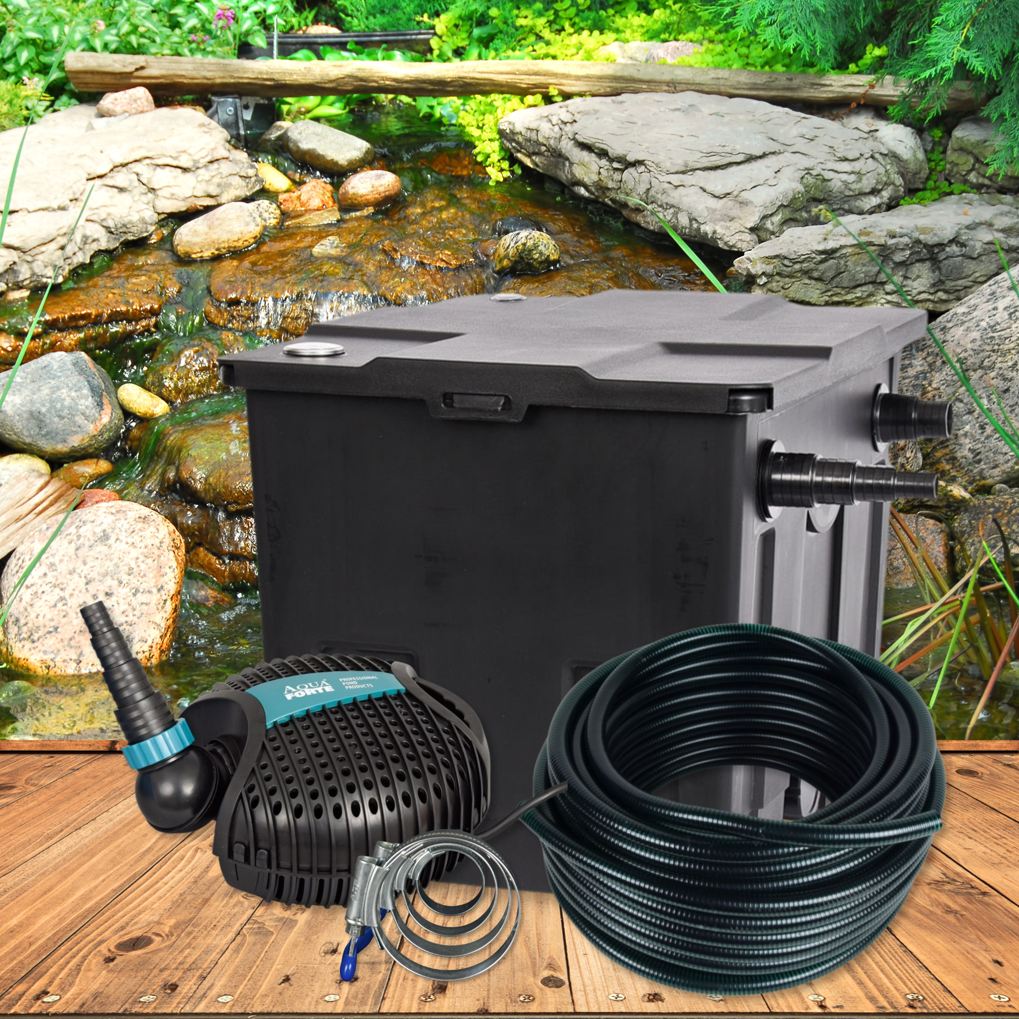 De optimale filterset voor kleine tuinvijvers tot maximaal 6.000 liter.