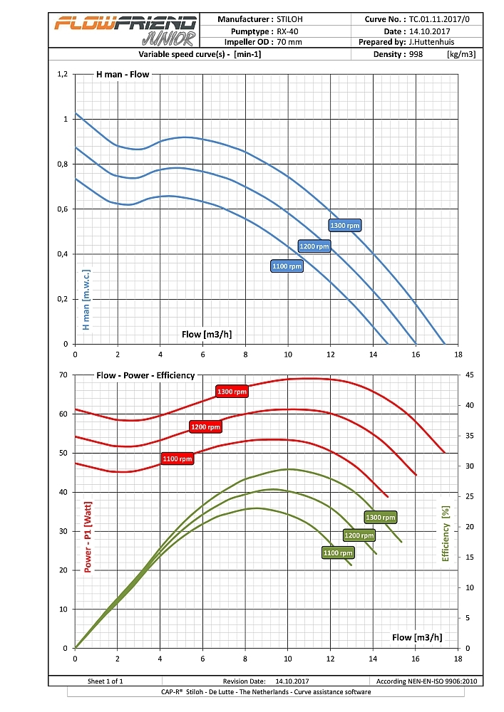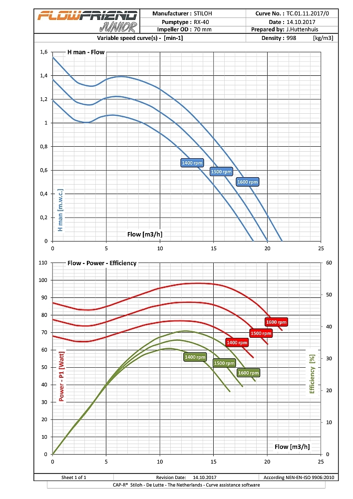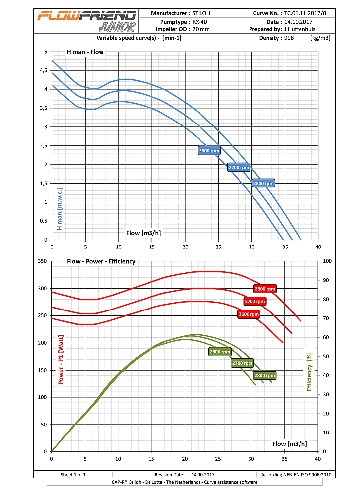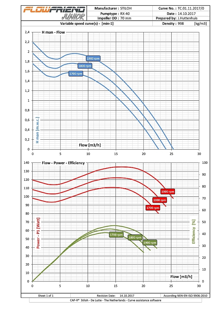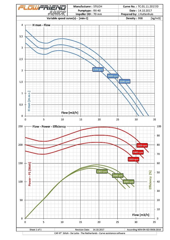 De FlowFriend Junior heeft een van de pomp gescheiden besturingselektronica en is gebouwd voor lagere eisen. Hij pompt tot 40 m3/uur en heeft een maximale druk van 7 m WS.