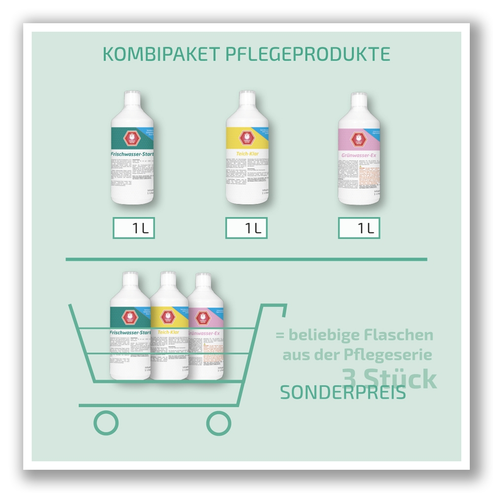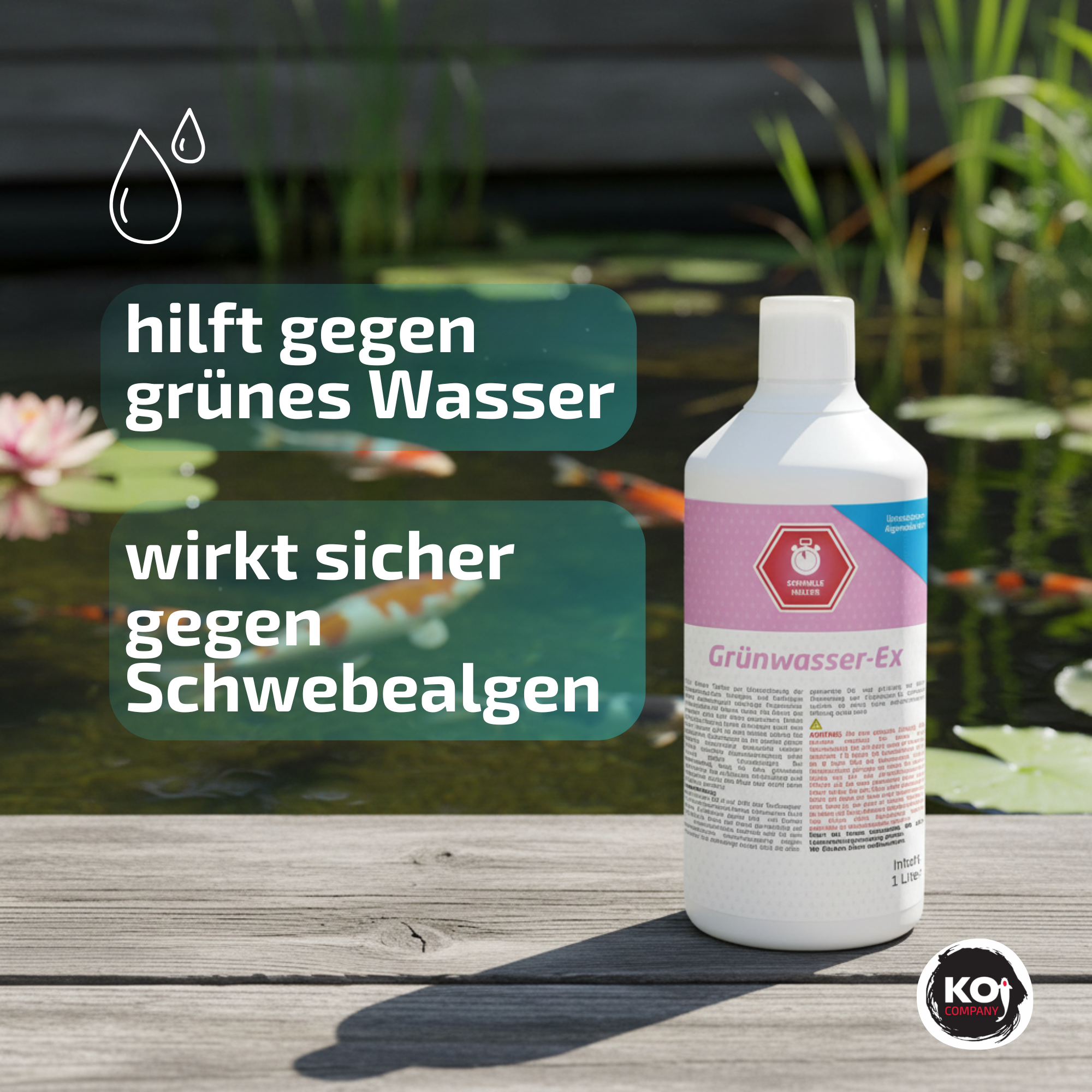 Grünwasser-Ex is speciaal ontwikkeld tegen groen water. De speciale samenstelling werkt effectief tegen zweefalgen. De ontstane vlokken worden verwijderd door het filter of een schepnet.