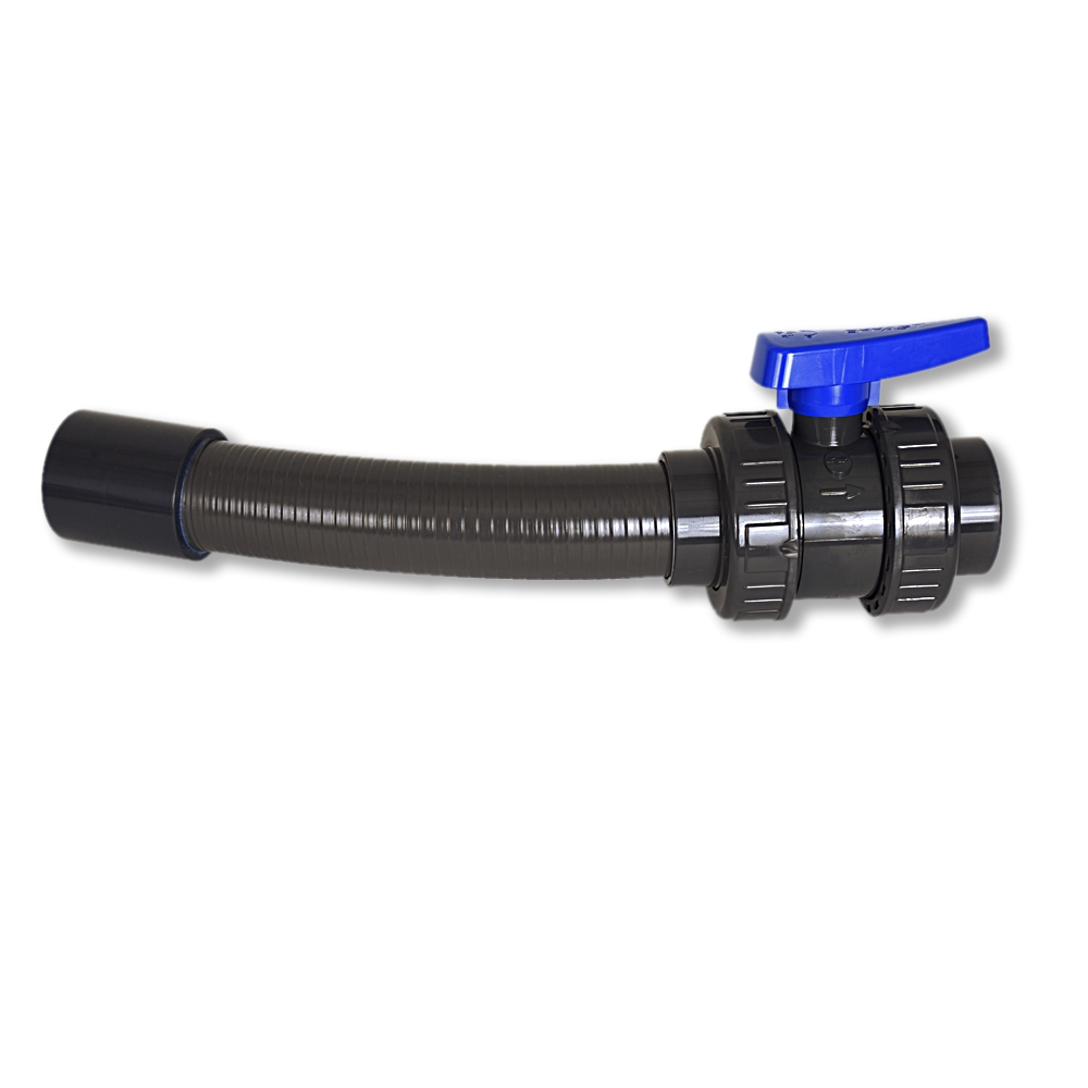 De slang kan, afhankelijk van de grootte, direct in een fitting van 50 mm of 63 mm worden gelijmd.