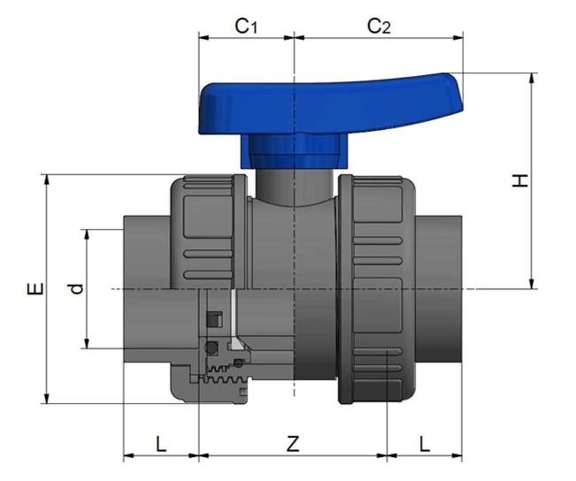 (d) Binnendiameter (L) Diepte (Z) Lengte H C1 C2 E