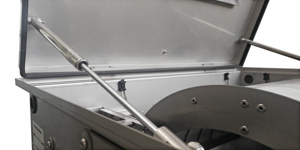 Het deksel met gasdrukdempers biedt gemakkelijke toegang tot het binnenste van het filter, het roestvrijstalen V2A-huis staat garant voor duurzame kwaliteit.