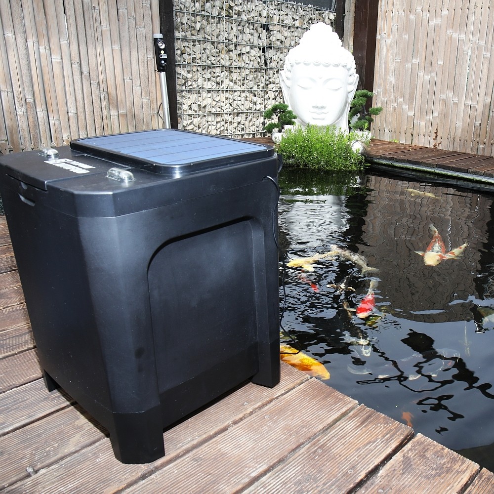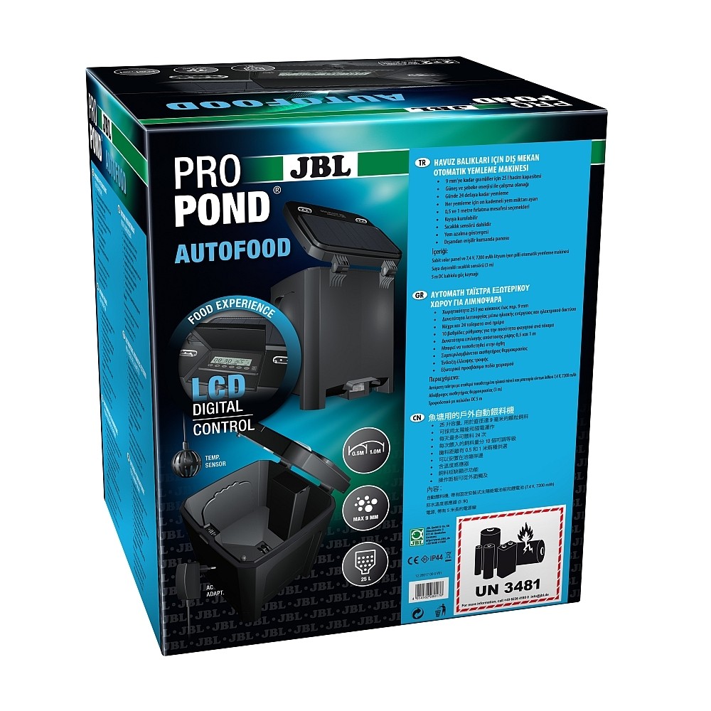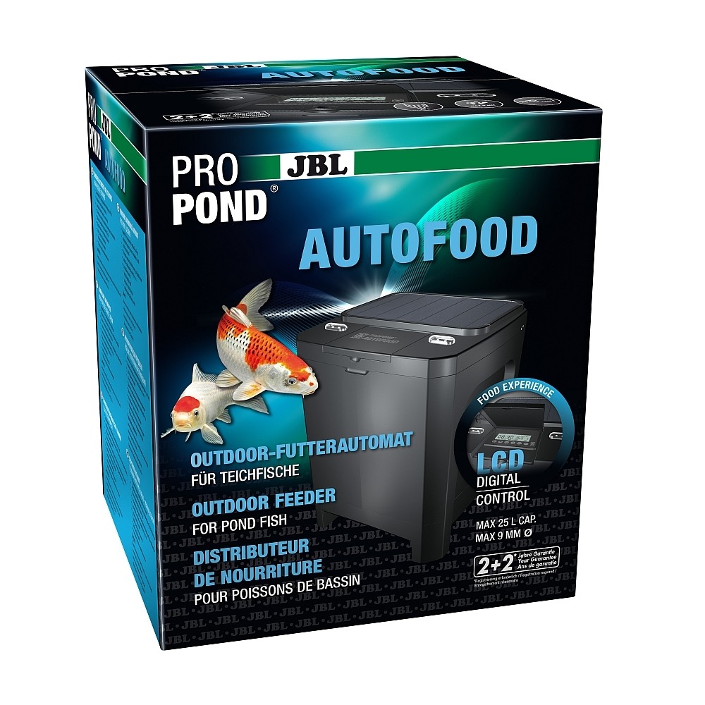 Met de JBL ProPond Autofood bieden wij een programmeerbare voerautomaat met een grote capaciteit aan. De automaat heeft een inhoud van maximaal 25 liter en kan dankzij zijn brede en instelbare uitworp van 0,5 - 1,0 meter ook door elke Japanse kweker met dankbaarheid worden gebruikt.