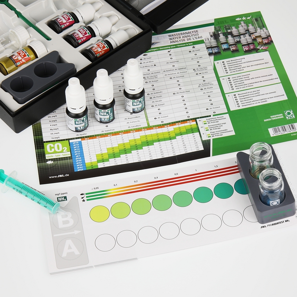 Eenvoudige testkoffer voor koi- en tuinvijvers. De set met de 5 belangrijkste watertests. Door de zeer eenvoudige kleurvergelijking en de nauwkeurigere indeling van de afzonderlijke tests kunt u de waarden zeer nauwkeurig bepalen.