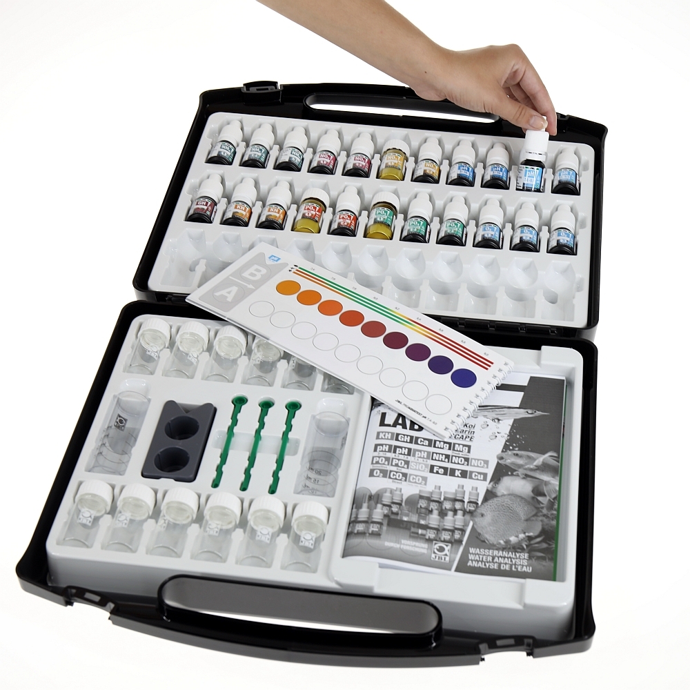 Mit dem Koffer die Mängel des Wassers schnell ermittelt und man kann dann schnell gegensteuern. Sollte jeder Teichbesitzer nutzen. Haben sonst alle zwei Wochen die Werte bei unserem ,,Fischdieler,, testen lassen . Mit dem Koffer ist man jederzeit in der Lage alle Werte schnell und zuverlässig selbst zu testen.Empfelenswert und leicht in der Handhabung.