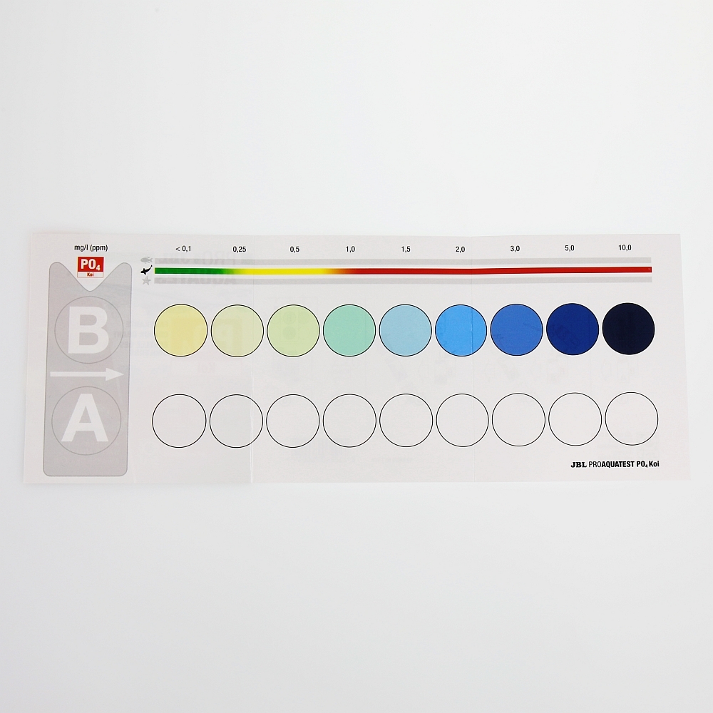 Graden van de waarden: < 0,1; 0,25; 0,5; 1,0; 1,5; 2,0; 3,0; 5,0; 10 mg/l PO4.