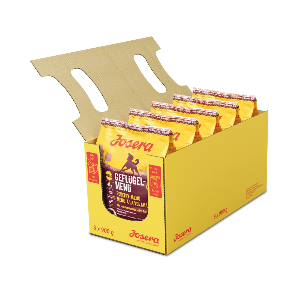Knapperige kroketten met geselecteerde ingrediënten en veel gevogelte – en dat voor een onverslaanbare prijs? Met ons Josera gevogeltemenu brengen we beide in evenwicht. Deze smakelijke en licht verteerbare maaltijd zal natuurlijk niet alleen u blij maken, maar ook uw trouwe viervoeter: want naast een zeer hoge acceptatie en goede verteerbaarheid wordt het ook graag gegeten door kieskeurige honden.