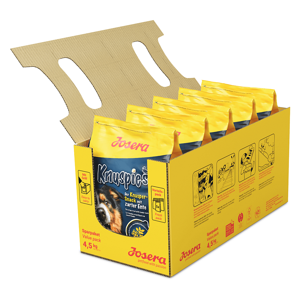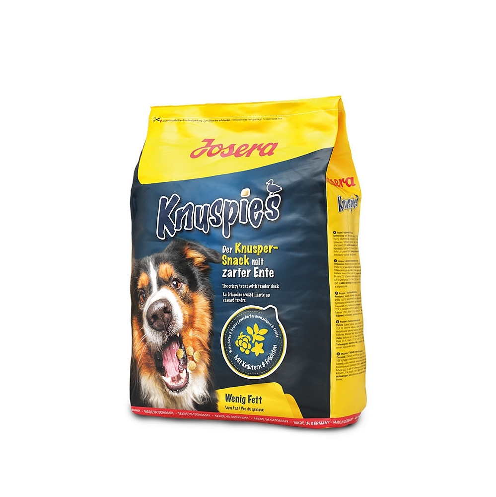 Josera Knuspies zijn de perfecte beloning voor tussendoor. De knapperige balletjes zijn bijzonder smakelijk door het malse gevogelte, met 15% smakelijke eend. Door het extra lage vetgehalte zijn Knuspies bijzonder licht verteerbaar. Josera Knuspies hebben een optimale grootte en zijn daardoor ideaal voor de dagelijkse training.