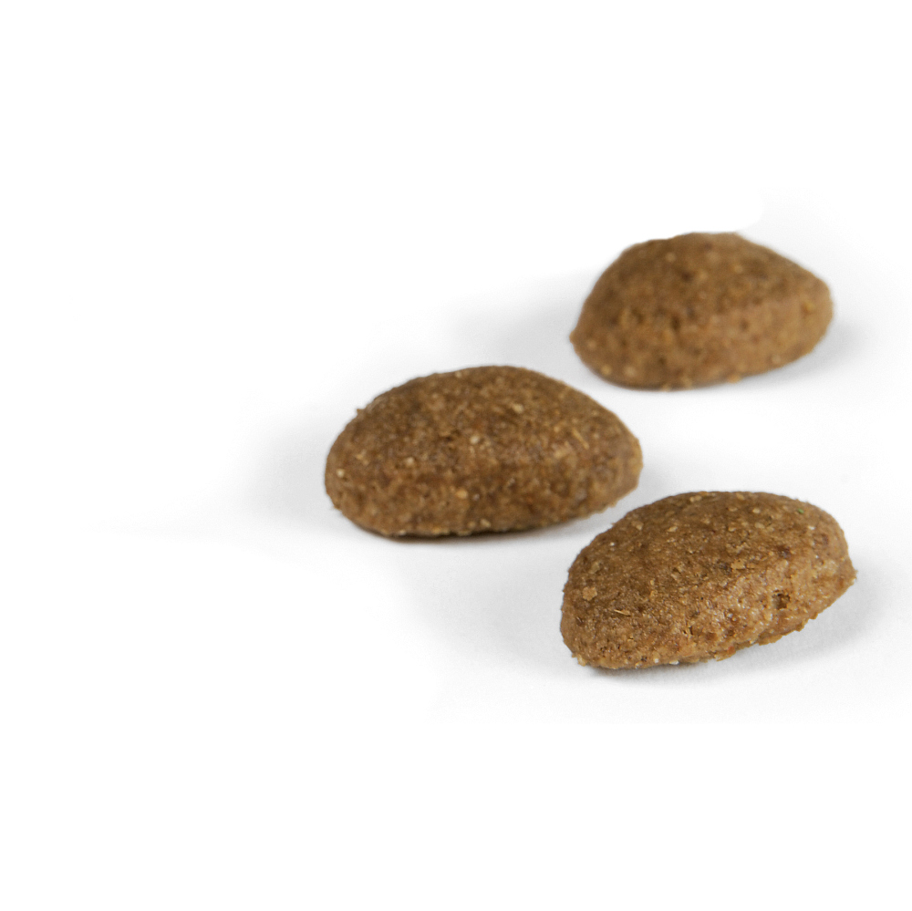Samenstelling: gevogeltevleesmeel, rijst, gerst, aardappelzetmeel 10,0%, gedroogde bietenpulp, gevogeltevet, lamsvleesmeel 4,5%, gevogelte-eiwit, gehydrolyseerd; natriumchloride, cichoreipoeder, kaliumchloride, mosselvleesmeel