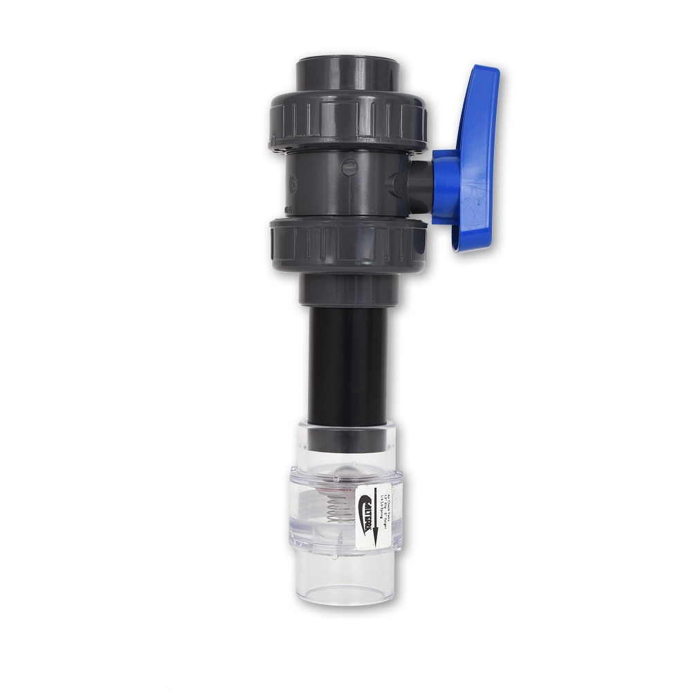 Wij raden aan om dit bij elk filter te installeren als veiligheidsmaatregel om de blower te beschermen. Bij een defecte terugslagklep in de voorste leidingen kan dit hulpstuk worden gebruikt om de leiding vóór de blower af te sluiten.