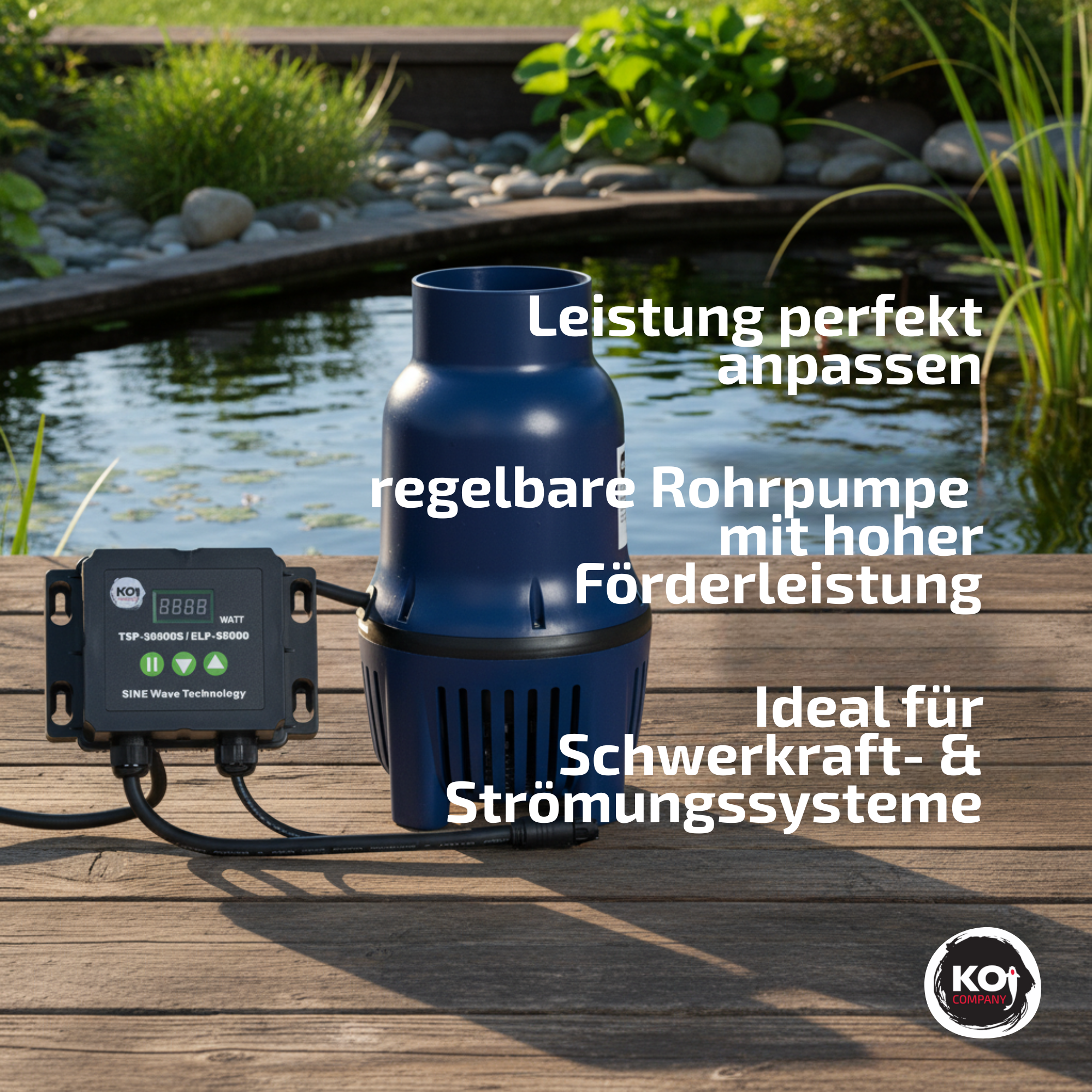 De Koi Company ELP Vario-serie is de eerste regelbare buispomp met een hoog debiet en tegelijkertijd een laag energieverbruik – perfect voor efficiënte vijversystemen.