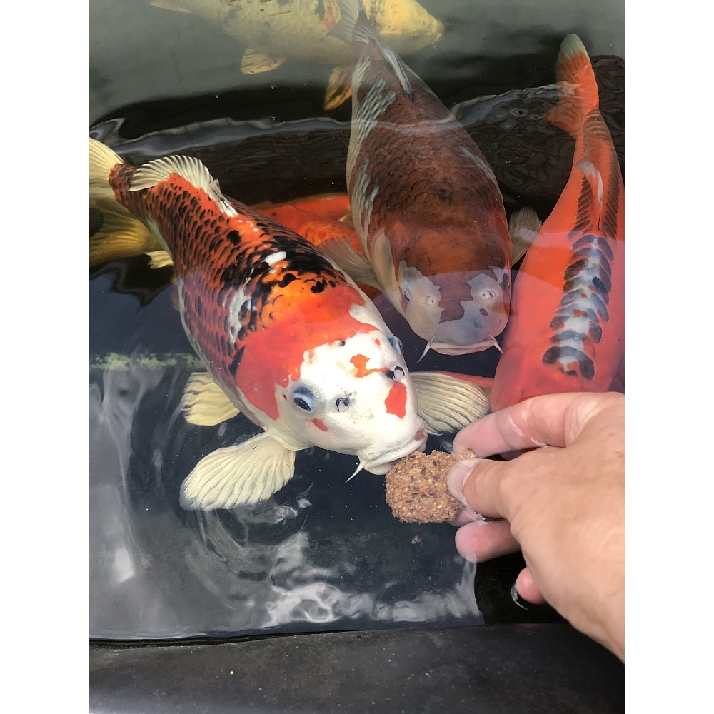 Met deze koekjes met een diameter van 45 - 50 mm kunt u uw koi lokken en ze uit uw hand voeren.