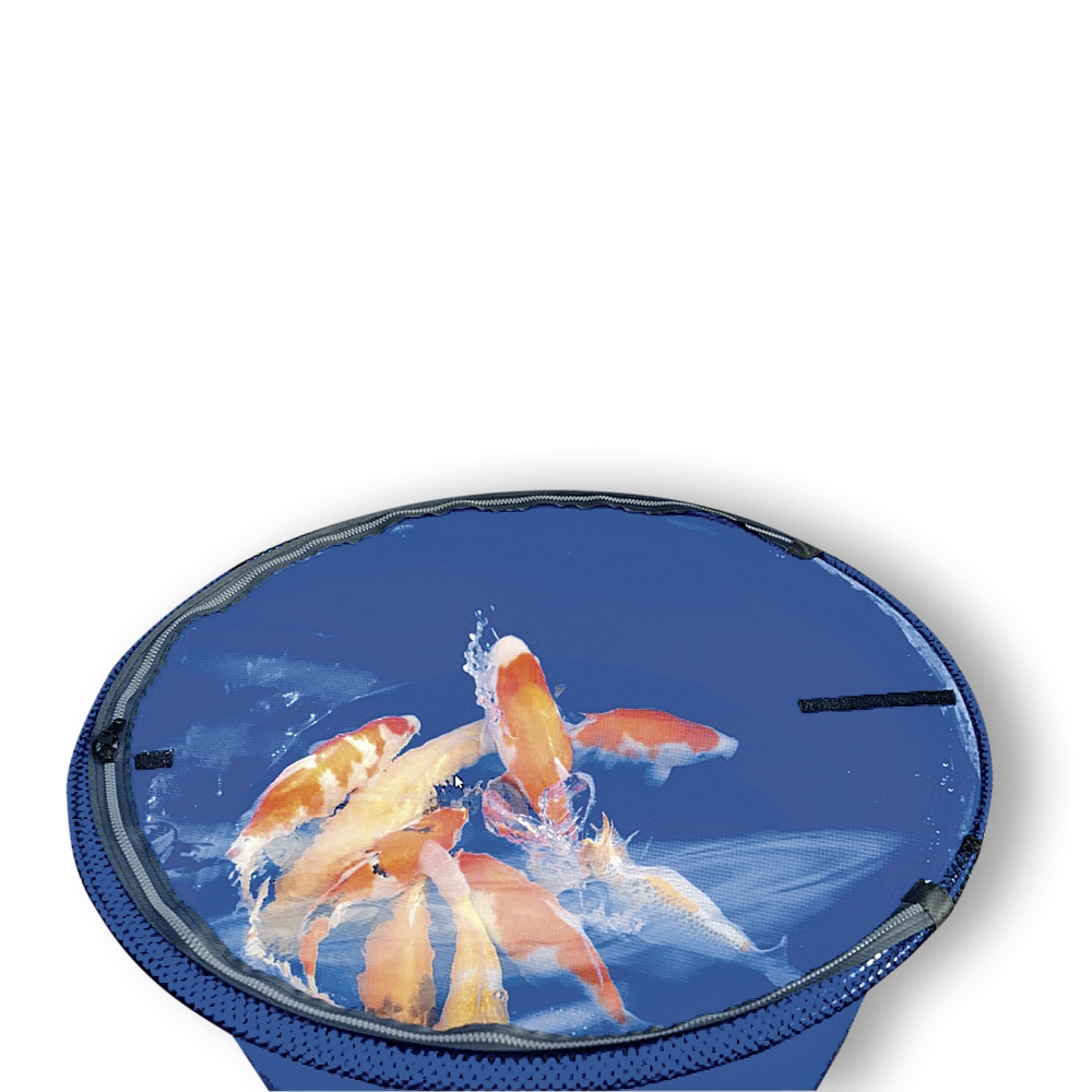 Wij bieden u vanaf nu hoogwaardige afdekkingen voor al onze bakken. Of ze nu rond of rechthoekig zijn, wij hebben ze allemaal. De transparante UV-bestendige folie is in een kunststof ritssluiting genaaid. Deze kan individueel worden geopend, zodat u uw vissen kunt behandelen. Door de folie zijn de vissen goed te observeren.