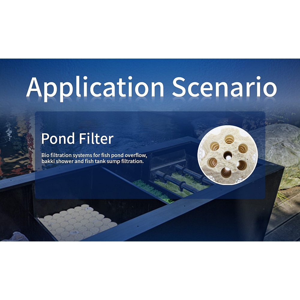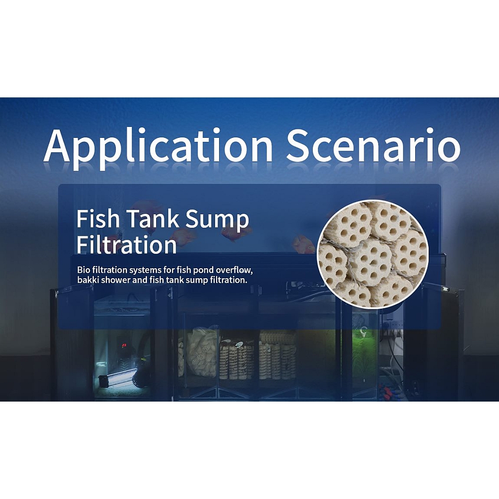 Het poreuze oppervlak met een enorm kolonisatieoppervlak van 6618 m²/l biedt filtratie-bacteriën veel ruimte op een klein oppervlak.