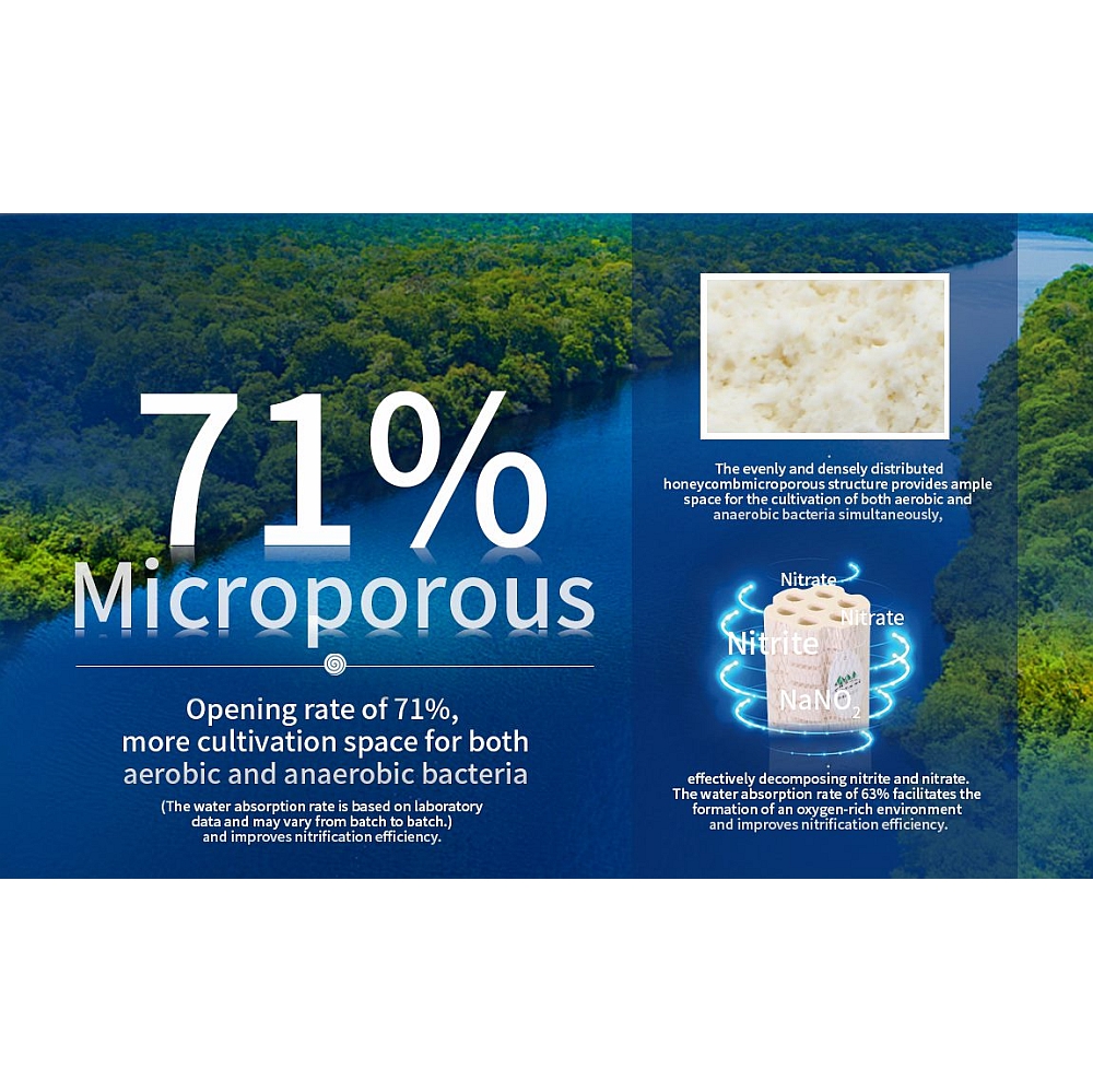 Speciale lotuswortel en nanoporiën bieden een ultieme groeiomgeving voor nitrobacteriën om de prestaties bij de afbraak van schadelijk nitraat en nitriet te verbeteren.
