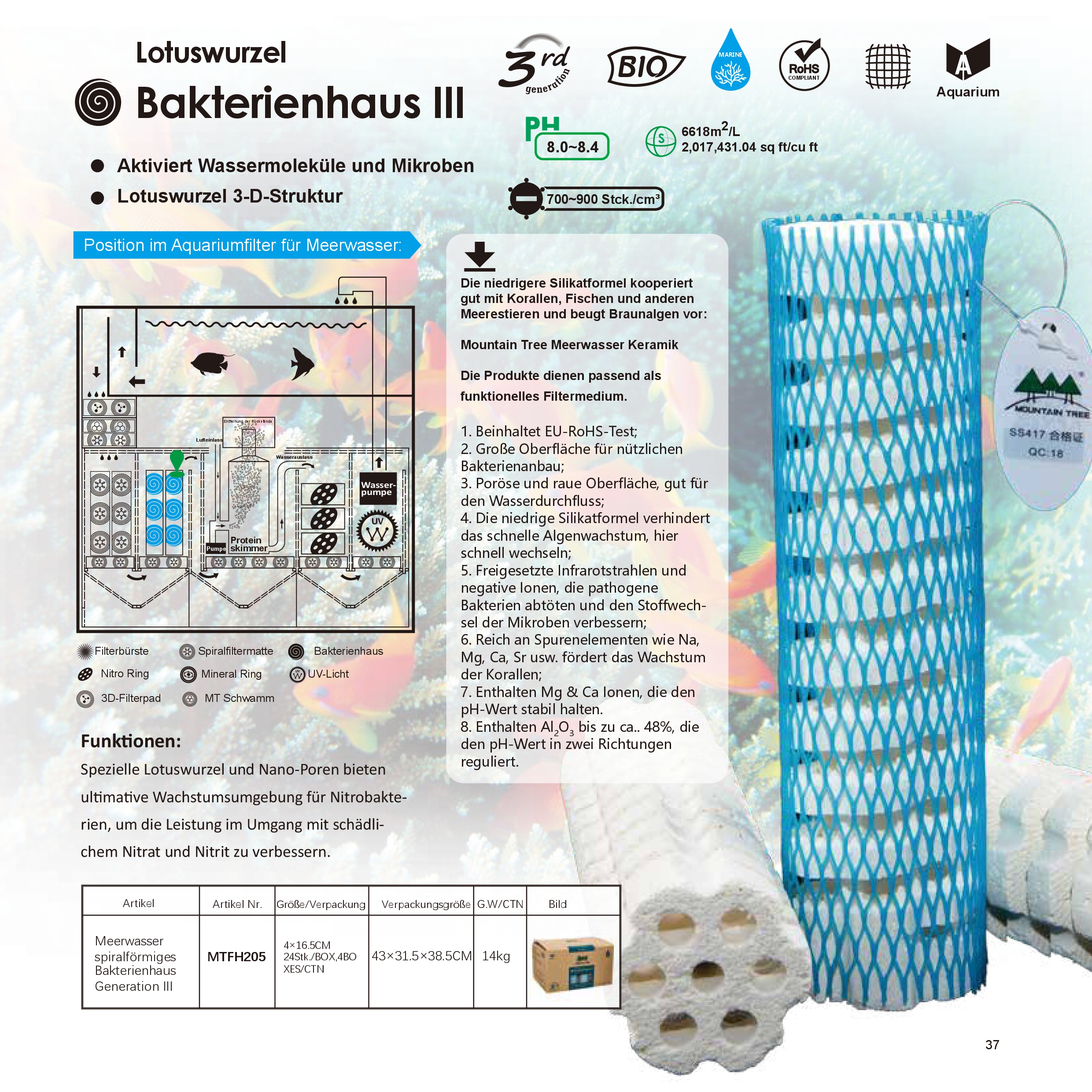 Het Mountain Tree bacteriehuis is een uitstekend filtermedium voor zeewater.