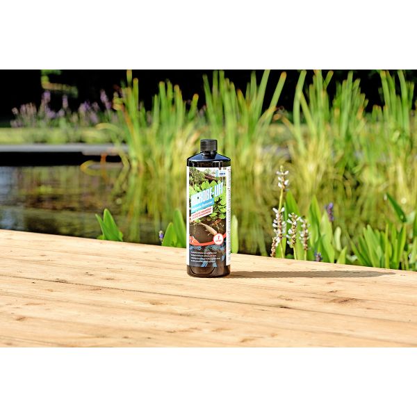 Een fles is voldoende voor 45.000 liter vijvervolume.