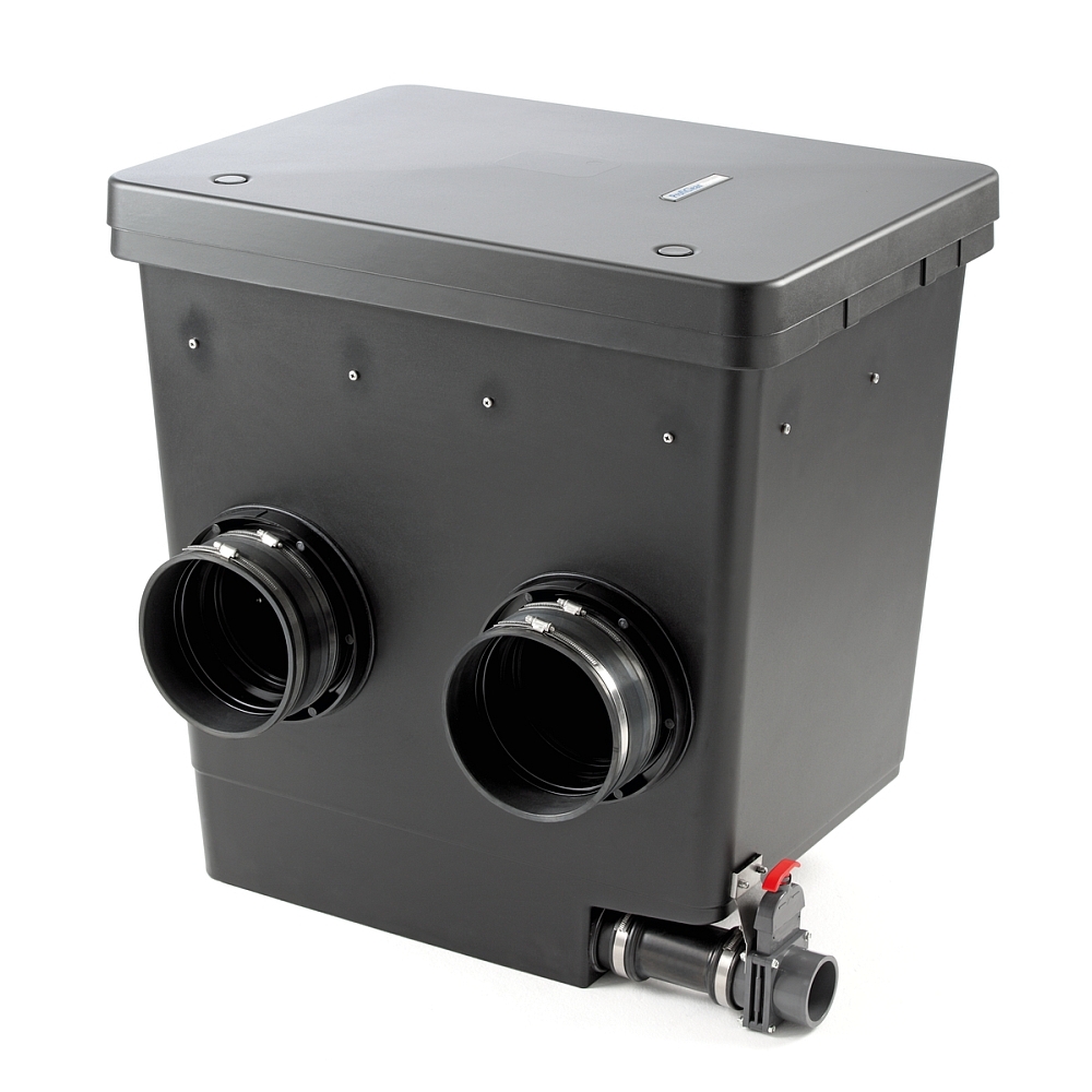 Een geïntegreerde afvoer aan de onderkant, inclusief schuif, dient voor het afvoeren van bezonken vuil.