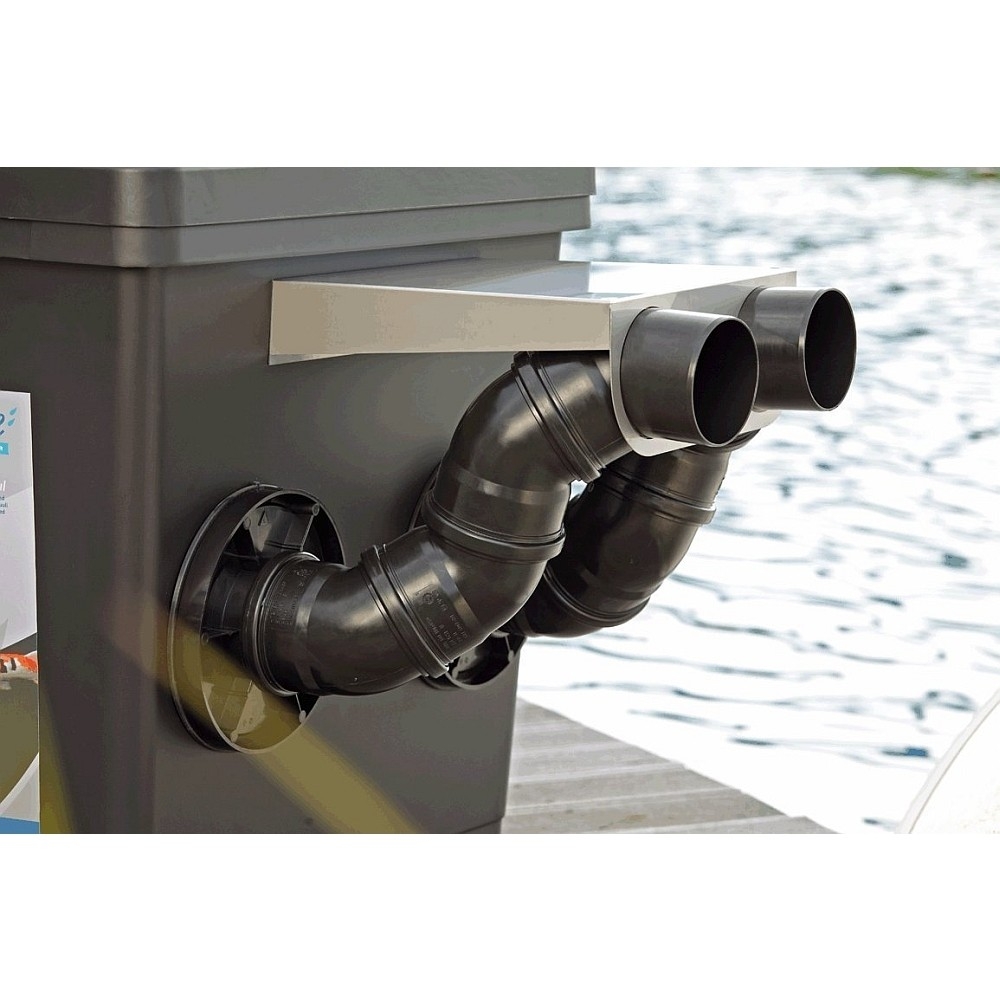 Bij gebruik van de OASE Moving Bed-module zonder de OASE individuele kamer moet de zwanenhalsafvoerset worden toegevoegd voor het juiste waterpeil in de tank.