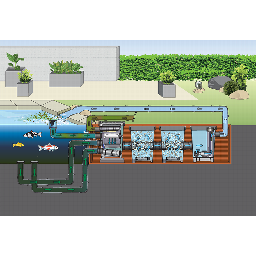 De volautomatische reiniging van het trommelfilter zorgt voor weinig werk en onderhoud bij het reinigen van het filter en biedt de gebruiker maximaal comfort bij zijn koivijver.