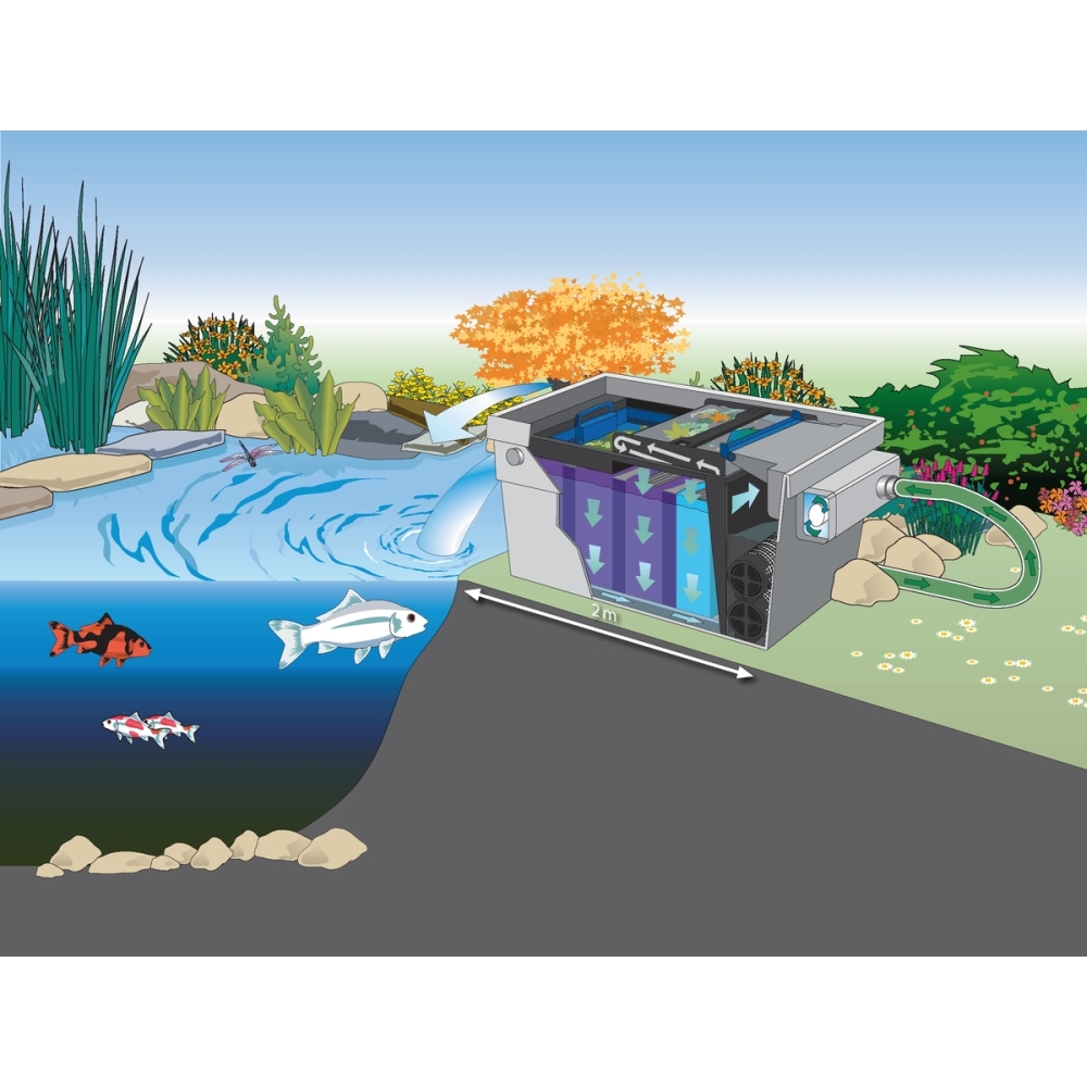 De daaropvolgende filtersponzen zorgen voor de fijne reiniging en de afbraak van schadelijke stoffen.