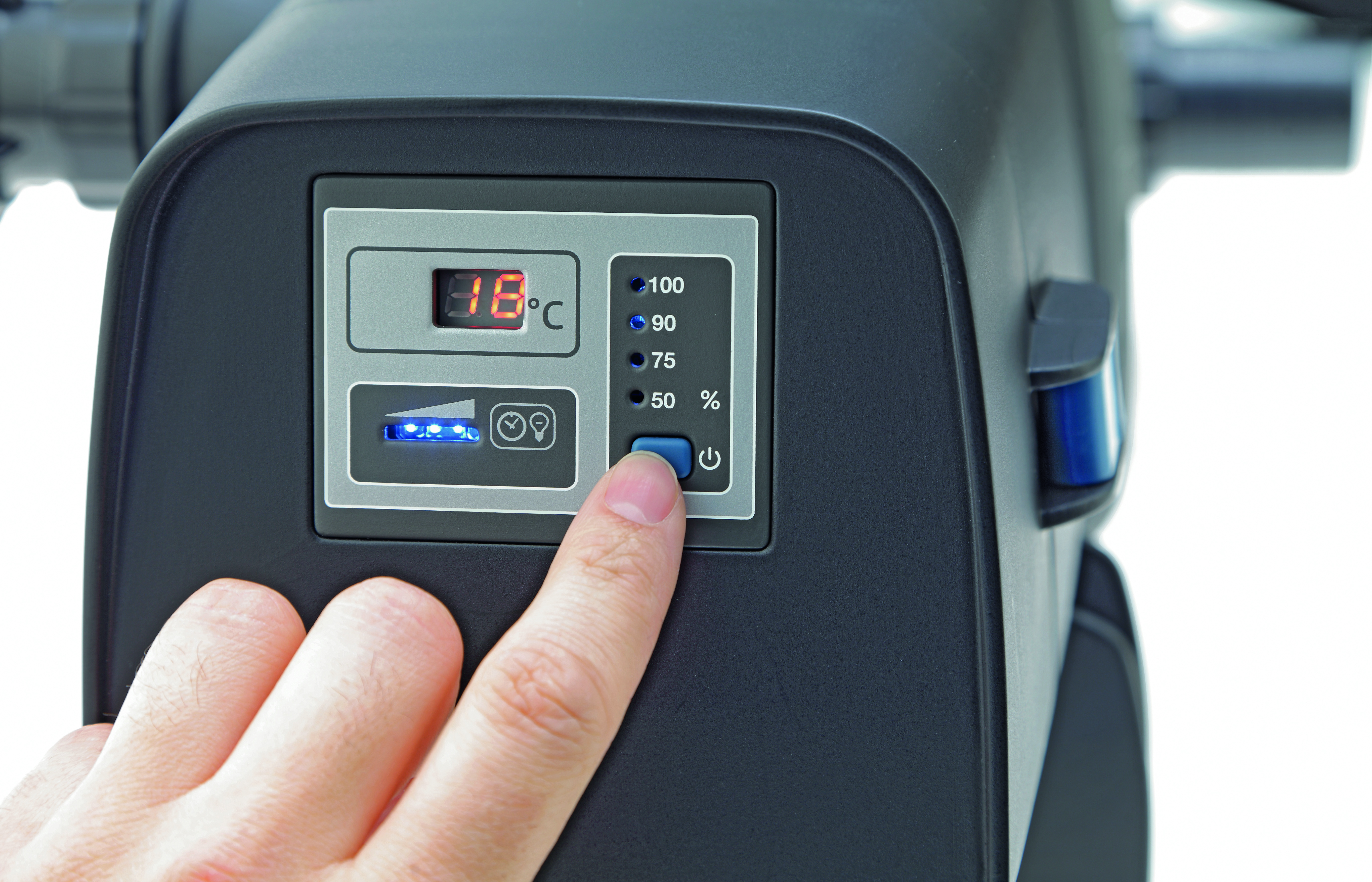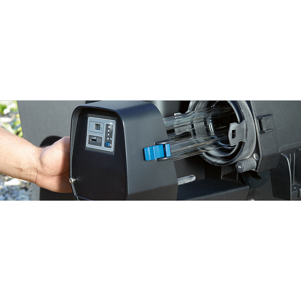 Op de behuizing kan aan de hand van een display de UVC-functie en de volgende noodzakelijke lampvervanging worden gecontroleerd. Daarnaast wordt ook de watertemperatuur weergegeven.