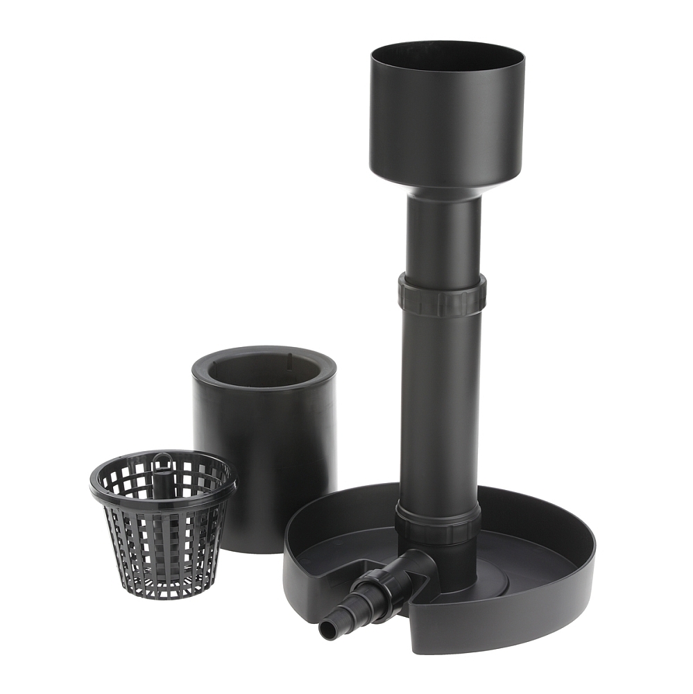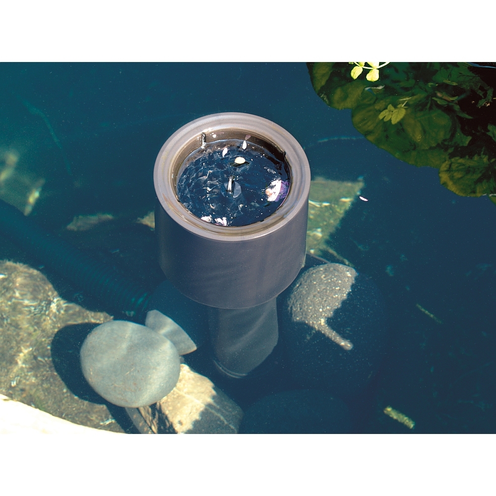 Door de drijvende opzetstuk past de skimmer zich gemakkelijk aan aan veranderingen in het waterpeil in de vijver en kan hij met behulp van de vastschroefbare staande buis in hoogte worden aangepast tussen 38 en 88 cm. Bij diepere oeverzones moet de skimmer worden onderbouwd en verhoogd worden geplaatst.