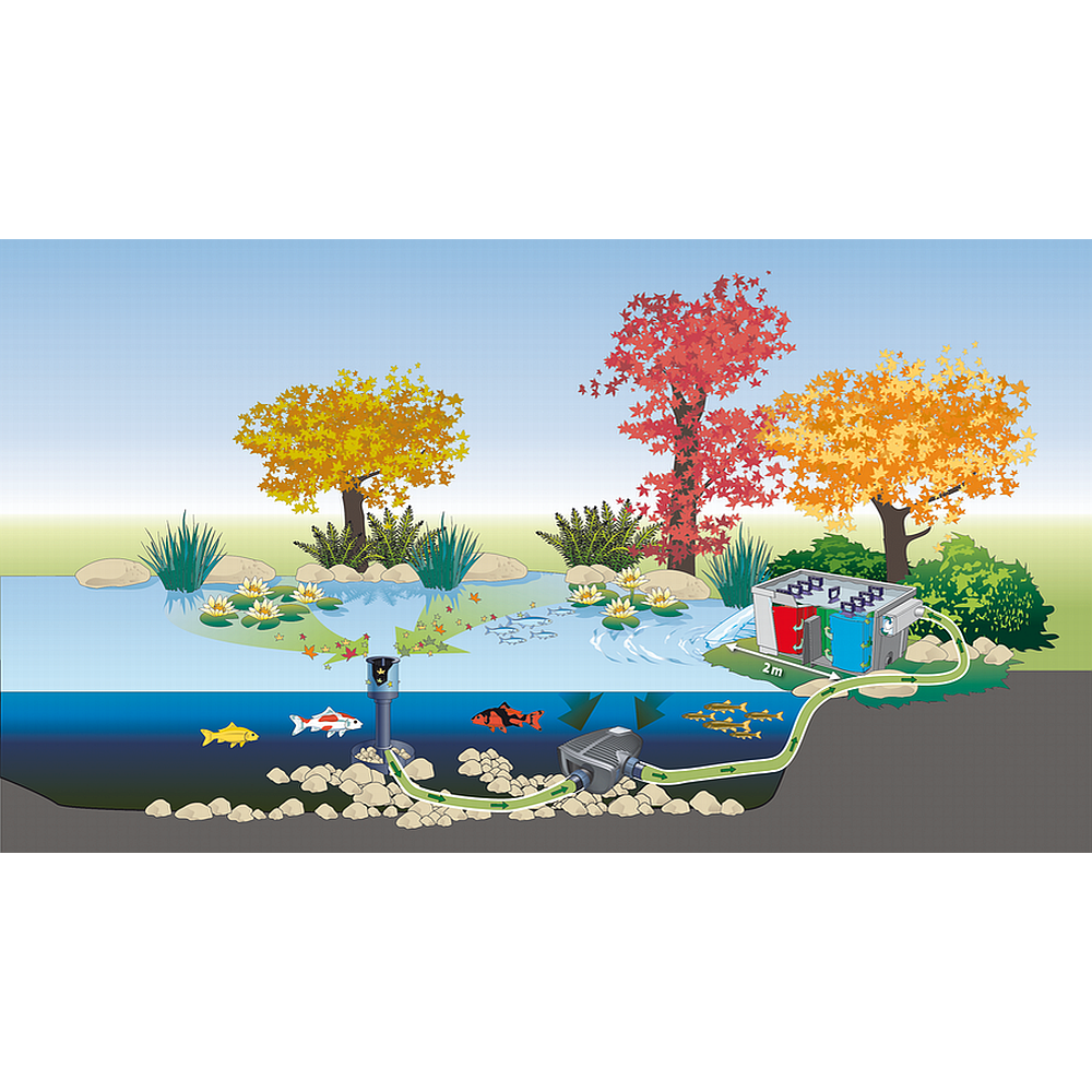 Dubbelwerkende pompen van Oase zijn ideaal in combinatie met de skimmer en kunnen via hun tweede ingang eenvoudig worden aangesloten met een slangverbinding tussen de pomp en de skimmer.