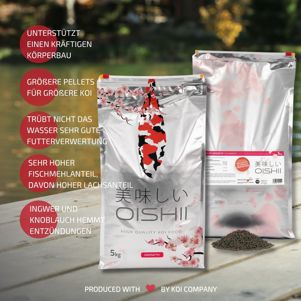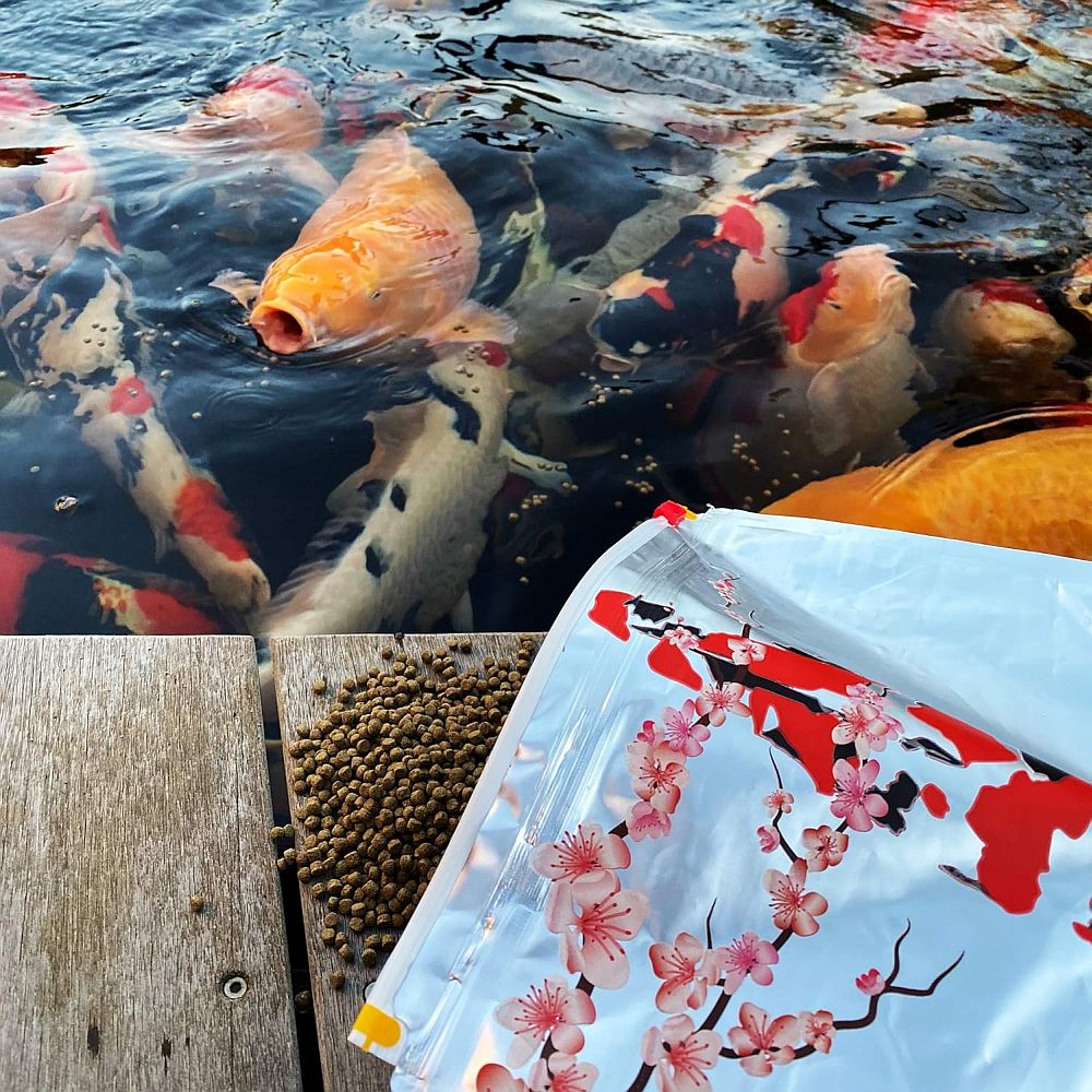 Oishii betekent lekker! En dat moet voer natuurlijk zijn, zodat onze koi het graag eten.