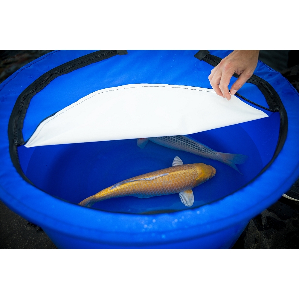 Door het spatwaterdichte materiaal kan er maar heel weinig water uit de bak spatten. Deze eigenschap is ideaal voor het vervoeren van vissen.