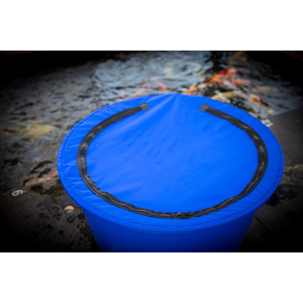 Wij bieden u vanaf nu spatwaterdichte en ondoorzichtige afdekkingen voor onze ronde bakken van 80 cm en XL-bakken blauw 125x110x73 cm.